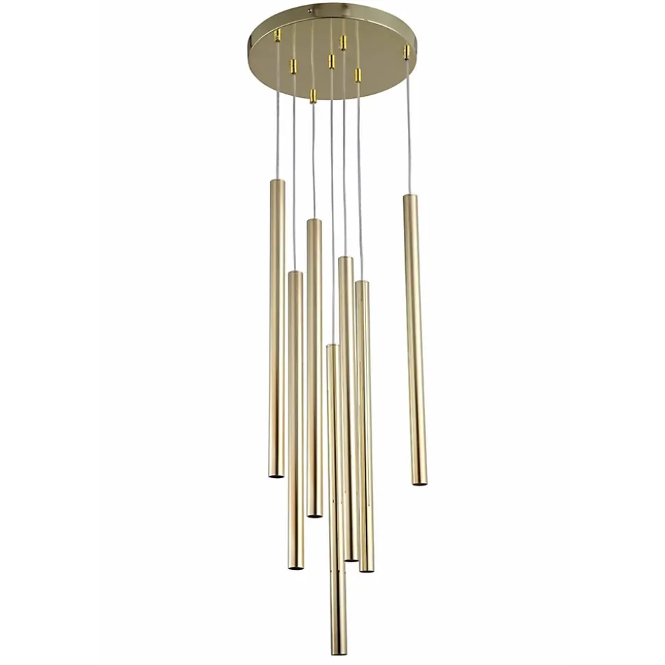 Malgré sa forme simple, la suspension Lungo 7 dorée attire le regard et sert non seulement de luminaire, mais aussi d’élément décoratif de choix. Fabriquée en métal doré, elle est composée de sept abat-jour tubulaires, chacun pouvant accueillir une ampoule G9. La suspension Lungo dorée en détail Type de lampe : Suspension Lungo 7. Dimensions : La suspension Lungo 7 mesure 150 cm de long. Ses abat-jour tubulaires, longs et étroits, ont un diamètre de 2,5 cm et une hauteur de 50 cm. Matériaux et couleurs : La suspension est en métal doré. Source lumineuse : La lampe peut accueillir sept ampoules G9. Forme simple couleur or La lampe Lungo 7 est une combinaison unique d’une simplicité presque Forme industrielle et couleur dorée. Les abat-jour, en forme de longs tubes étroits, sont suspendus à un câble de 150 cm. Cette lampe apportera une touche d’élégance à de nombreux intérieurs. Elle s’intégrera parfaitement dans votre maison, ainsi que dans les hôtels et les bureaux. Elle sera idéale au-dessus d’une table à manger ou dans un salon. La collection de suspensions Lungo comprend trois modèles déclinés en plusieurs coloris : or, noir, rouge brique et un mélange de couleurs. Chaque modèle offre une solution d’éclairage unique. Leur forme épurée les distingue incontestablement des autres lampes. Ce design minimaliste s’adaptera à de nombreux espaces et agencements. Voir la collection complète de suspensions Lungo .