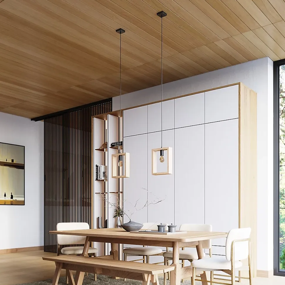 Cette lampe suspendue élégante allie simplicité et modernité. Elle se compose d’un cadre carré en bois et d’une seule ampoule suspendue au centre. Elle s’intègre parfaitement dans les intérieurs de style scandinave ou comme accent dans les espaces plus éclectiques. La simplicité du design permet d’utiliser cette lampe dans différentes pièces de la maison.
