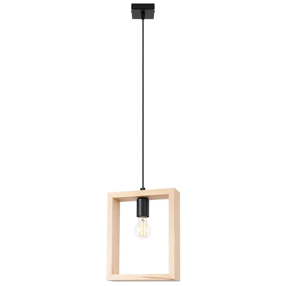 - Lampe suspendue élégante avec cadre carré en bois et ampoule unique