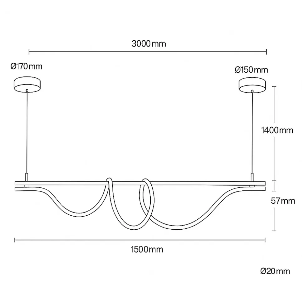 Suspension Moderne Néon Ondulant SALSA – 360 – 45W – 4000KLa suspension SALSA offre un design avant-gardiste avec un tuyau néon ondulé qui permet une disposition personnalisée. Cette lampe diffuse une lumière douce et homogène dans une tonalité blanche neutre (4000K), idéale pour créer une atmosphère moderne et accueillante dans n’importe quel espace.Caractéristiques Principales:Design Moderne: Suspension linéaire avec tuyau néon ondulé, ajustable et personnalisable.clairage Doux: 45W de puissance, émettant une lumière blanche neutre de 4000K.Répartition Uniforme de la Lumière: Haute densité de puces LED garantissant un éclairage homogène, parfait pour les grands espaces.Flexibilité du Design: Le tuyau néon permet de modifier la disposition pour créer un design unique et personnalisé.Couleurs Disponibles: Noir et doré.Installation Facile: Tous les accessoires nécessaires au montage, avec câbles en acier plastifié et rosaces pour fixation au plafond.Hauteur Réglable: S’adapte aux besoins spécifiques de l’espace.Dimensions: 1500x1400x150mm.Spécifications Techniques:Tension Nominale: 220-240V ACPuissance: 45WAngle d’Ouverture: 360Ton de Lumière: Blanc Neutre (4000K)Structure: Disponible en noir ou doréIndice de Protection: IP20 (usage intérieur)Applications:Idéale pour éclairer et décorer les salons, salles à manger, espaces de travail et tout environnement recherchant une touche moderne et accueillante.