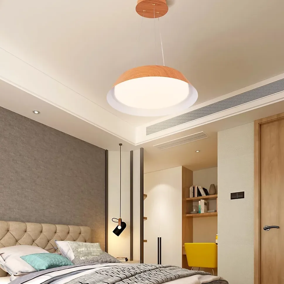 - Design Moderne en Grain de Bois : L’abat-jour chic en grain de bois orne ce plafonnier, insufflant à vos espaces de vie, une chaleur et un charme contemporains. En outre, l’abat-jour a un effet anti-poussière, vous évitant de l’essuyer régulièrement.