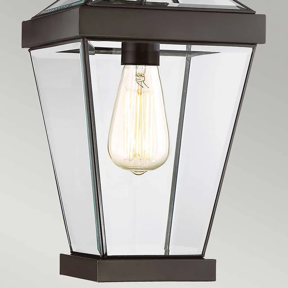 La collection Ravine pour l’extérieur offre un style sophistiqué dans un style minimal. Le riche bronze occidental de la base met en valeur les panneaux de verre biseauté sur les côtés et le dessus du luminaire. Veuillez noter que les ampoules vintages ne sont pas incluses mais sont disponibles à l’achat.