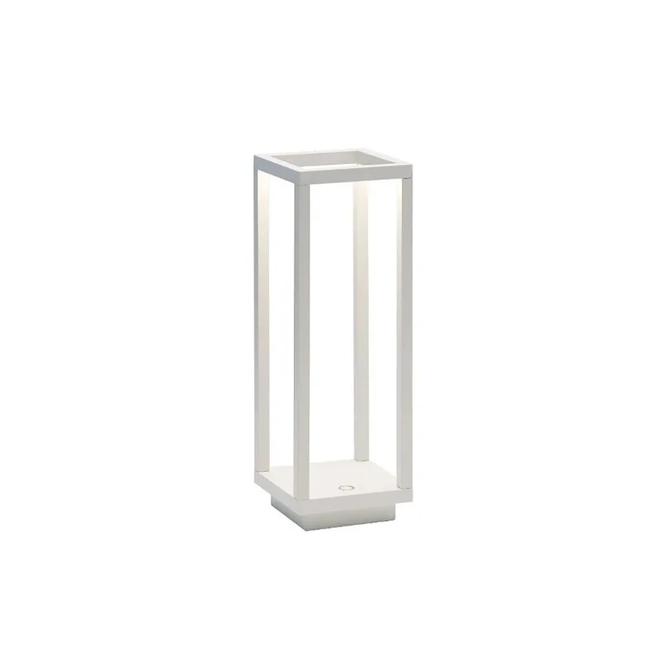 Lanterne LED blanche de sol ou de table Home de Zafferano, alimentée par batterie de 2,2 watts.Dimensions : hauteur 29,4 cm, largeur et longueur de 10 cm.Lampadaire avec structure en aluminium moulé sous pression peint en blanc, diffuseur en polycarbonate. La lampe est équipée d’une batterie rechargeable via une base de charge à contact spécial. Batterie au lithium rechargeable et remplaçable.Base de chargement par contact incluse dans l’emballage.Où puis-je utiliser ma lanterne LED à piles de 2,2 watts ?Cette lampe LED à piles de 2,2 watts peut être placée sur le sol ou sur la table à l’extérieur, sous un pavillon ou un auvent, à l’extérieur d’un restaurant, dans une ferme, dans une allée, dans n’importe quel espace extérieur. La lumière chaude, dont est équipée cette lampe de table LED à piles, crée un environnement très accueillant, en effet elle est également beaucoup utilisée dans des endroits comme les pubs ou les restaurants. Produit d’ameublement. Comme il n’a pas d’électricité, il peut également être déplacé sans problème. La durée de vie de la batterie atteint jusqu’à 12 heures à puissance maximale.Le temps de charge de la batterie est compris entre 6 et 8 heures. Lanterne LED à piles disponible en trois couleurs : Blanc, Gris Foncé et Corten.La lanterne LED à piles de 2,2 watts est uniquement disponible dans la tonalité de couleur de lumière chaude (3000K). Lanterne d’extérieur LED avec indice de protection IP54 qui rend le produit adapté à un usage externe et interne. Modèle de maison de Zafferano code LD0258B3