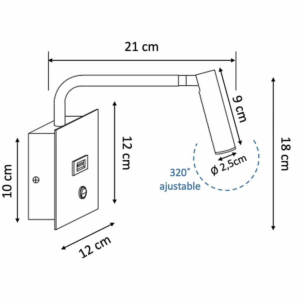 Craquez pour cette applique murale liseuse ! Design et pratique elle est composée d’un port USB intégré et d’un bouton interrupteur. Avec sa finition couleur blanche, elle s’adaptera parfaitement à vos intérieurs. Tourner le faisceau lumineux comme vous le souhaitez grâce à la liseuse orientable !) Livré monté, prêt à installer (