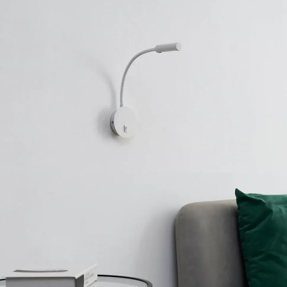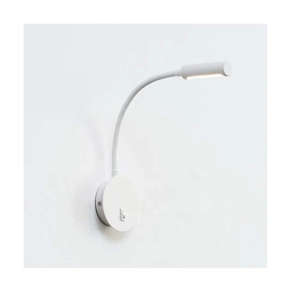 Petite applique liseuse blanche avec son interrupteur intégré. Elle est pourvue de la technologie LED pour un éclairage économique et de longue durée. Le bras est orientable, pratique pour amener la lumière vers un point précis ! Son socle fait 10 cm de diamètre, pratique et discrète elle sera idéale dans une chambre de chaque coté d’un lit.Norma existe aussi en noir.) Livré monté, prêt à installer (