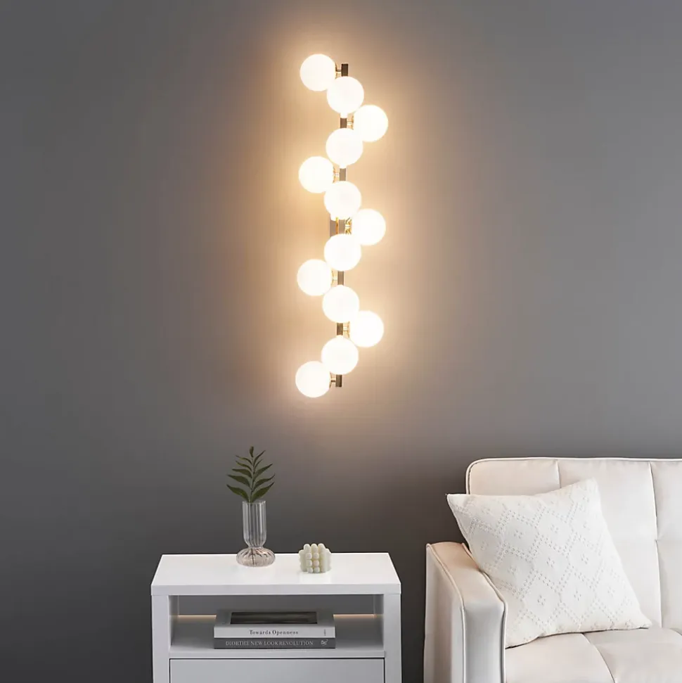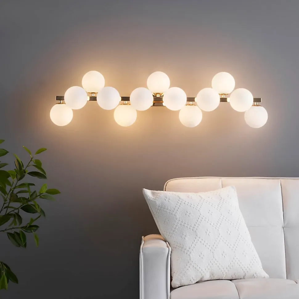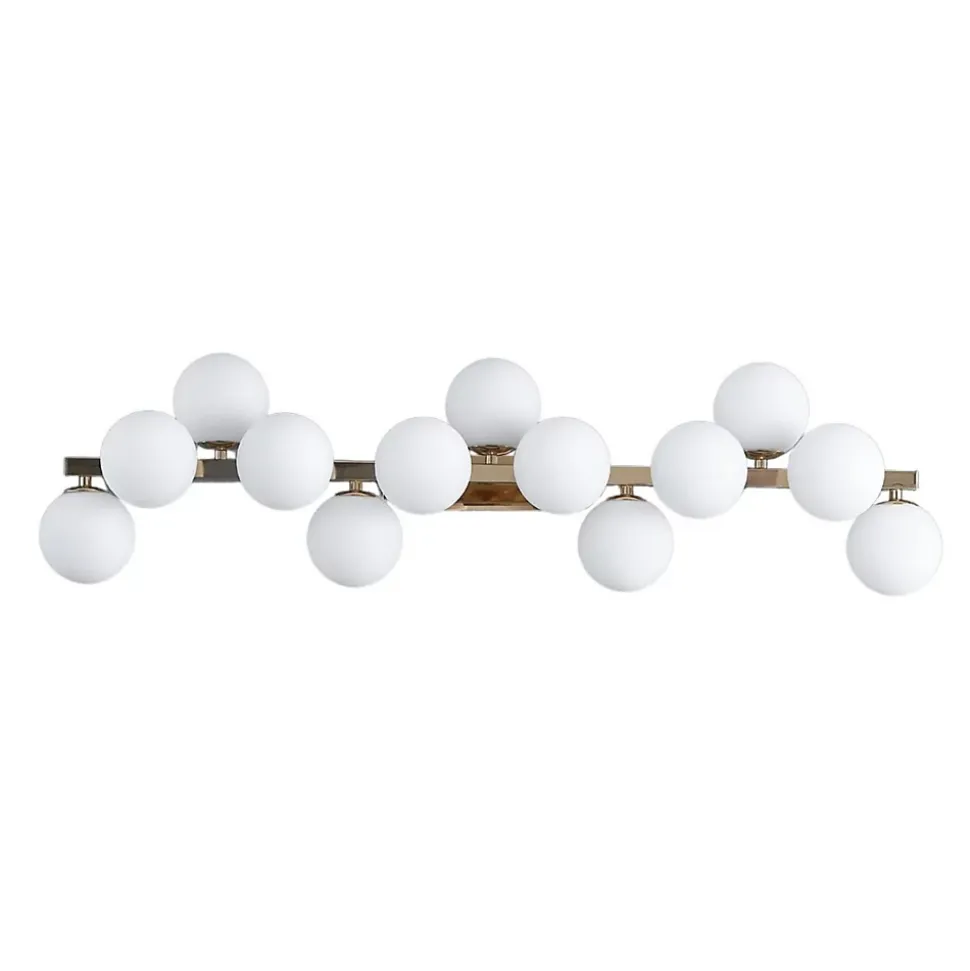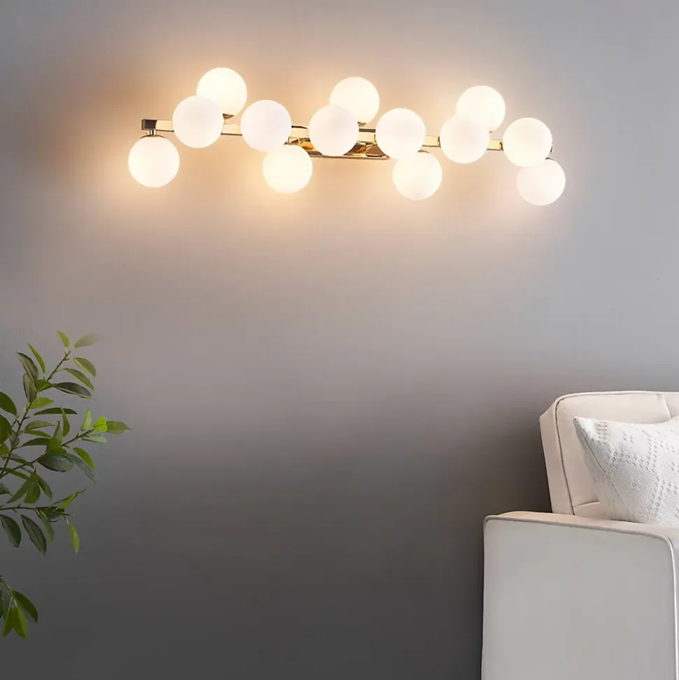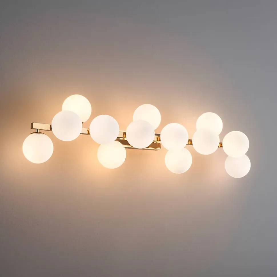 Ambrosia est une applique dorée impressionnante, ornée de 13 verres blancs qui apportent une touche de glamour à votre espace. Son design élégant et ses matériaux de qualité en font un luminaire attrayant pour éclairer et embellir votre intérieur. Polyvalente, elle peut être installée horizontalement ou verticalement selon vos préférences. À compléter avec 13 ampoules G9 (non fournies), privilégiez les LED blanc chaud pour un éclairage agréable. Découvrez toute la collection Ambrosia ici.) Assemblage simple requis (