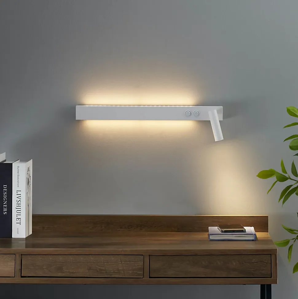 Découvrez Stanli, une applique murale à la fois élégante et pratique. Avec sa conception en aluminium et sa finition blanche, elle s’intègre harmonieusement à tout type de décor. Sa longue forme permet un éclairage optimal pour un bureau ou une zone de travail. De plus, elle est dotée d’une liseuse orientable et de deux interrupteurs indépendants, offrant une flexibilité d’utilisation remarquable.) Livré monté, prêt à installer (