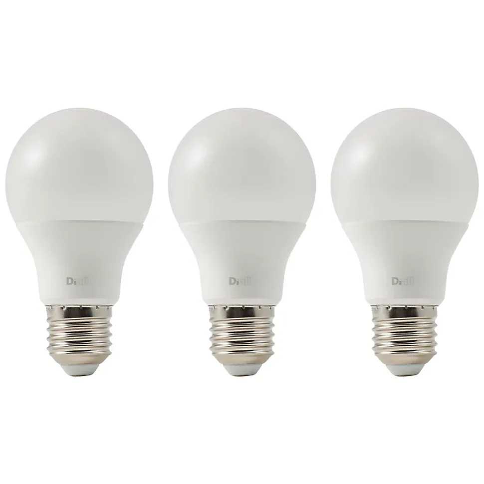 Lot 3 ampoules LED A60 E27 806lm 7.3W = 60W Ø6cm Diall blanc chaud