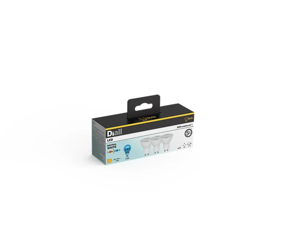 Lot 3 ampoules LED spot réflecteur GU10 345lm 3.6W = 50W Ø5cm Diall blanc neutre dimmable