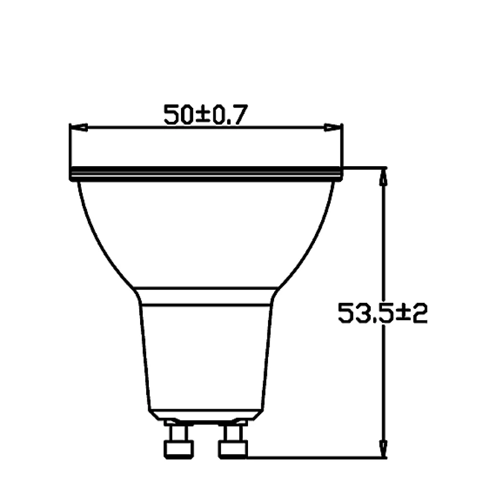 Lot de 10 ampoules LED GU10 5.5W (Eq. 50W) 4000K 38° Dimmable offre un éclairage performant et des économies d’énergie de plus de 80%. Elle est idéale en remplacement d’une ancienne ampoule GU10 halogène, énergivore. En général l’ampoule LED GU10 5.5W est associée à un support de spot rond ou carré encastrable au plafond. Néanmoins elle peut également être utilisée avec d’autres types de luminaires comme des spots sur rails, des suspensions, appliques etc. L’angle du faisceau lumineux est de 38°, c’est un angle moyen qui permet l’éclairage d’accentuation de certaines zones d’une pièce. Sa température de couleur kelvin est de 4000 Kelvin (blanc naturel). Cette couleur d’éclairage créer une atmosphère cosy, propice à la détente et au repos. Le flux lumineux de cette ampoule LED spot est de 350 Lumens. Son diffuseur opaque permet un éclairage sans éblouissement. Son corps est en PC et aluminium. De plus, cette ampoule est dimmable, donc compatible avec un variateur d’intensité. Cette ampoule est également disponible en 2700K (blanc chaud). Température de couleur : 4000K Blanc naturel Puissance : 5.5W Lumens : 350lm Angle faisceau : 38° Dimmable : Oui Culot : GU10 Indice rendu des couleurs (IRC) : 80 Durée de vie : 25000h Hauteur : 53.5mm Diamètre : 50mm Cette ampoule est conforme à la norme CE, à la directive RoHS et DEEE. Grâce à son rendement énergétique élevé, elle possède une classe énergétique A+.