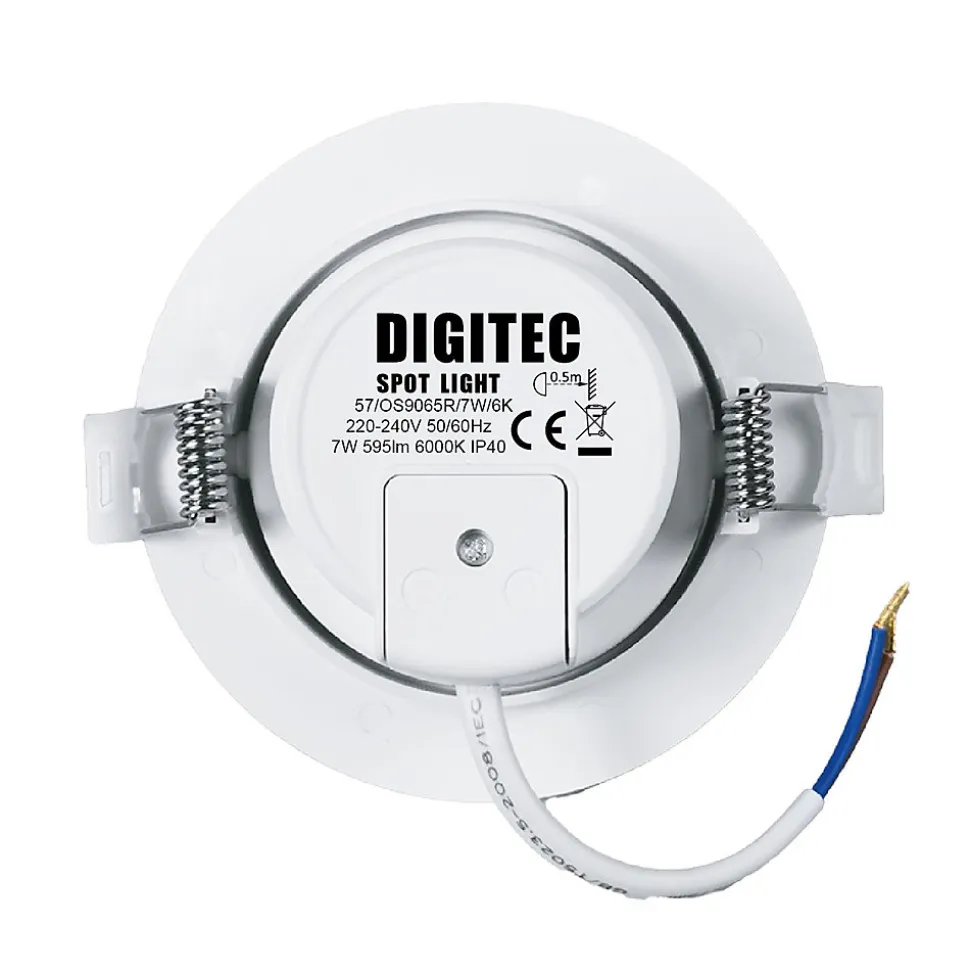 Le Spot LED est orientable, l’angle de la source lumineuse peut être ajusté à +30° pour s’adapter aux différentes conditions d’éclairage.Avec une conception de lentille, il y a un angle de convergence de 38° pour éviter la diffusion de la lumière, la lumière est vive et douce, sans scintillement, une protection des yeux brillante, créant une sensation de surélévation du plafond et réduisant la sensation d’occlusion dans la pièce.Température de couleur : Blanc froid 6000KTension d’Alimentation : AC220-240VPuissance consommée : 7WFlux lumineux : 595 LumensDiamètre du spot : ø90*43mmDiamètre de perçage : ø70mmC.R.I. : >80Orientable : +30°Transformateur : intégréCouleur du produit (y compris le cadre) : BlancMatériel : PA + Verre acryliqueIndice de protection : IP 40Dureé de vie : x15000 ON/OFFGarantie fabricant : 2 ansConforme à la norme CE, RoHS, ERP