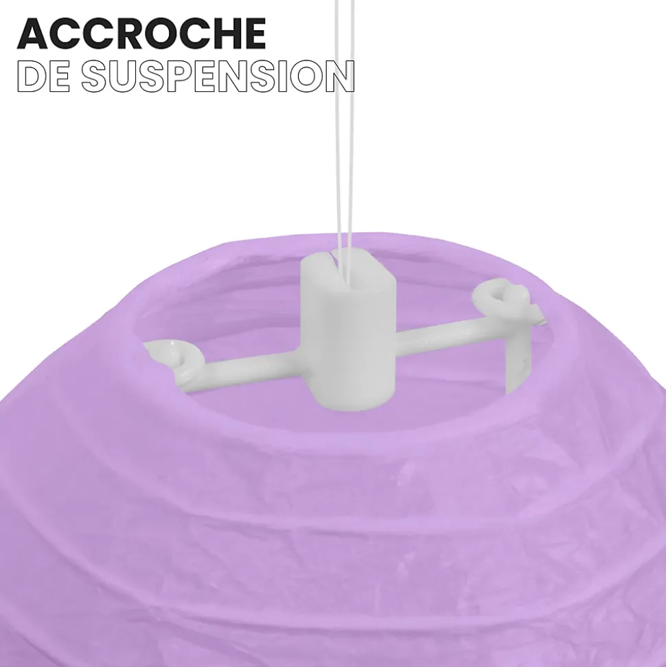 Lot de 12 lanterne papier de 10cm : Une décoration poétique pour tous vos évènementsFini de chercher d’autres idées pour embellir votre lieu de fête, les lanternes chinoises en papier de soie de SkyLantern.fr, vont vous permettre de créer un cadre poétique et authentique en quelques minutes. Epatez vos invités en utilisant votre sens du détail, puis composez en suivant vos idées. Votre lot de 12 boules papier parme de 10 cm devrait vous surprendre grâce à l’éclat de ses teintes sans oublier sa jolie forme qui s’intègre dans tout lieu festif.Lanterne japonaise pour déco mariage parme 10 cm : comment l’utiliser ?Ce type de boule chinoise est pratique pour les mariages, une Bar Mitzvah, une decoration anniversaire. Nos boules papier sont simples à déplier, il ne vous faudra pas longtemps pour décorer votre salle de couleur parme. Le montage ne réclame pas d’outil compliqué. Pour un meilleur rendu, vous pouvez suspendre la suspension luminaire avec du fil de pêche ou de la cordelette. N’hésitez pas à faire passer un filin parcourant les hauteurs. Ces articles se marient bien avec les autres produits SkyLantern, les lampions LED, les étoiles, ou les rosaces.Si jamais la couleur parme n’est pas la couleur dominante dans votre thème, vous pouvez compléter avec l'n;une des nombreuses teintes disponibles. Mixez différentes tailles en plus du diamètre 20 cm, modèles vendus: de 10 à 50 cm.SkyLantern est une marque française basée à Lille et spécialisée dans la deco japonaise à base de lampion papier. La marque est chaque année mise en avant par le top du top des professionnels de la déco et la presse spécialisée.