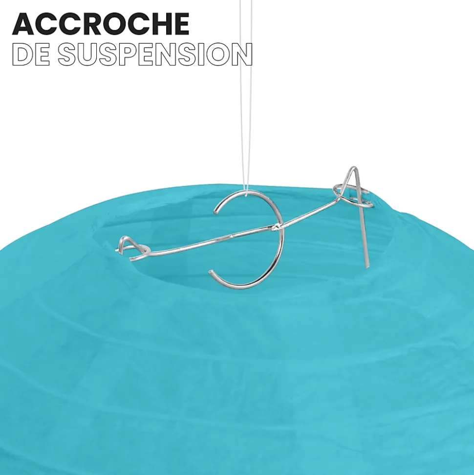 Lot de 12 lanternes papier 20 cm – Turquoise : une décoration fraîche et lumineuseAjoutez une touche de couleur éclatante à vos événements avec ce lot de 12 boules japonaises en papier turquoise de 20 cm. Leur teinte vive et élégante crée une ambiance estivale et joyeuse, parfaite pour un mariage, une fête d’anniversaire, un baptême ou une réception en extérieur.Très simples à installer, ces lanternes se déplient en quelques secondes et se suspendent à l’aide de fil de pêche ou de cordelette. Leur format 20 cm est idéal pour habiller un plafond, une pergola ou un espace arboré sans alourdir la décoration.Pour sublimer votre mise en scène, associez-les à des pompons, rosaces ou lampions. Le turquoise se combine parfaitement avec des teintes blanches, roses, dorées ou naturelles pour créer une composition dynamique et harmonieuse.Disponibles en plusieurs tailles de 10 à 50 cm, ces lanternes permettent de jouer sur les volumes et les hauteurs. Si le turquoise n’est pas la couleur principale de votre thème, explorez les autres coloris disponibles pour une décoration totalement personnalisée.SkyLantern, la référence des décorations lumineusesSkyLantern est une marque française basée à Lille, spécialisée dans la décoration japonaise à base de lampions en papier. Reconnue pour la qualité de ses produits, elle est plébiscitée par les professionnels de l’événementiel et la presse spécialisée.