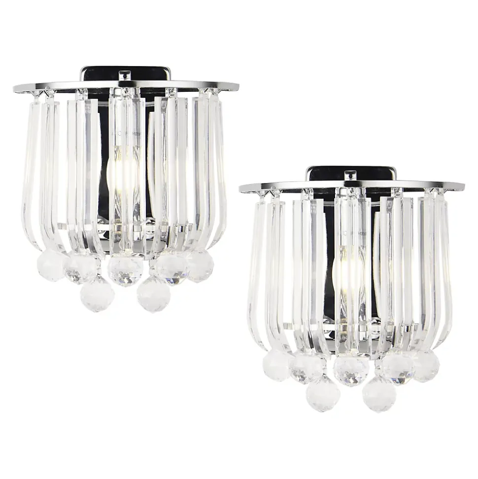 Lot de 2 appliques muralesNotre ensemble de 2 appliques murales au style élégant et intemporel complétera parfaitement la décoration de votre salon, chambre ou bureau. Elles offrent une ambiance chaleureuse à votre intérieur et s’adaptent facilement à tous les styles et toutes les pièces de vie.Description :- set de 2 appliques murales modernes et stylées- idéales pour toutes pièces de la maison- abat-jours avec cristaux artificiels décoratifs- montage mural rapide et facile- dotée d’une douille pour chaque applique muraleCaractéristiques techniques :- douille : 1 x E14, max. 40W (livraison sans ampoule)- alimentation : 230V, 50HzMatière :métal + plastiqueDimensions :- totales (hauteur x largeur x profondeur) : 24 x 22 x 15 cmCouleur :chromeContenu de la livraison :2 x appliques murales (les ampoules ne font pas partie de l’offre)Produit de la marque :lux.pro