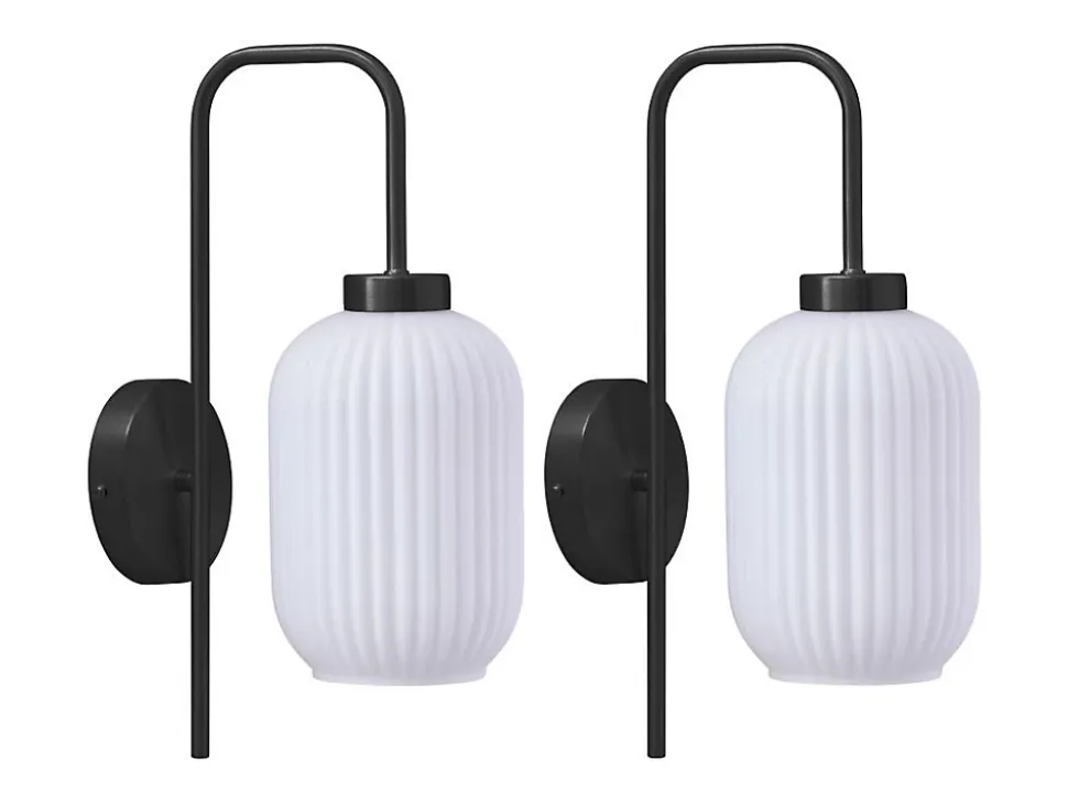 - Lot de 2 appliques murales en métal et verre blanc, L. 25 x H. 41 x P. 14 cm, Noir, LOUXOR. Les luminaires LOUXOR seront vos alliés pour une décoration chic !
