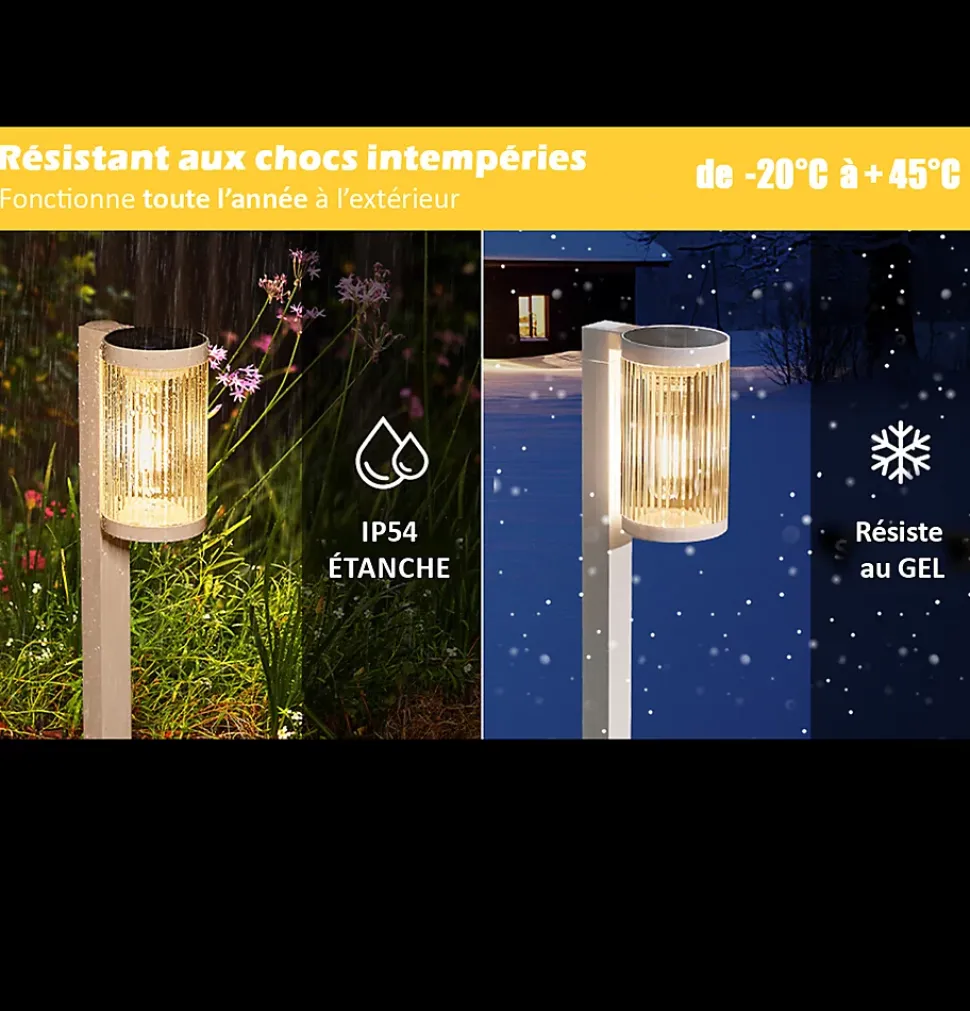 - Éclairage doux et chaleureux : Offre une luminosité de 25 lm en blanc chaud (3000K), idéale pour créer une ambiance agréable et sécurisante sur vos allées, chemins ou jardins.