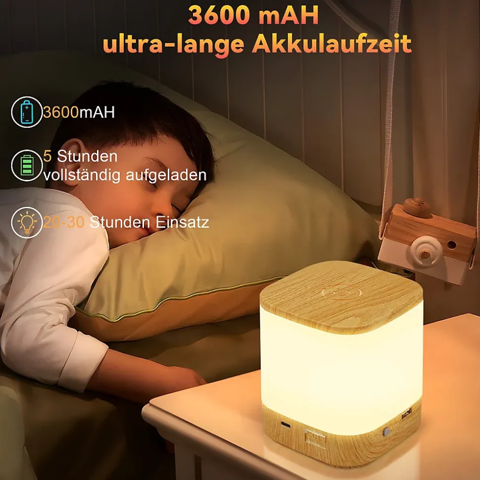 [Lampe de chevet multifonctionnelle] La lampe de chevet LED est dotée d’une gradation tactile et de 3 températures de couleur (3000K-4500K-6000K) pour trouver l’atmosphère d’éclairage la plus agréable selon votre humeur et répondre facilement à vos besoins de détente quotidienne, de sommeil et de soins nocturnes.[Source de lumière douce] La lampe de table sans fil a une lumière douce et agréable, est 100 % sans scintillement, protège les yeux des enfants et des personnes âgées et est très adaptée à l’éclairage nocturne.[Fonction minuterie] Appuyez longuement sur le bouton de minuterie de la lampe de chevet à piles pour régler la veilleuse pour enfants afin qu’elle s’éteigne automatiquement après 15 min/30 min/1 h. C’est le choix idéal pour les soins de bébé, dormir dans la chambre des enfants et le camping en plein air.[Autonomie de la batterie extra longue] La lampe de chevet à intensité variable dispose d’une batterie au lithium intégrée de 3600 mAh qui peut être complètement chargée en seulement 5 heures. peut être complètement chargé et dure jusqu’à 35 à 160 heures, dites adieu aux tracas des charges fréquentes. De plus, la lampe tactile est équipée d’un port de chargement USB pour permettre le chargement des téléphones portables et des tablettes.[Cadeau idéal] La lampe de table LED est un cadeau parfait pour les amis et la famille, parfaite pour créer une atmosphère relaxante dans la chambre, la chambre de bébé, le bureau et le camping, même pendant le yoga, au restaurant ou lors d’un pique-nique en plein air.:
