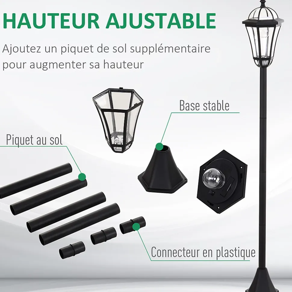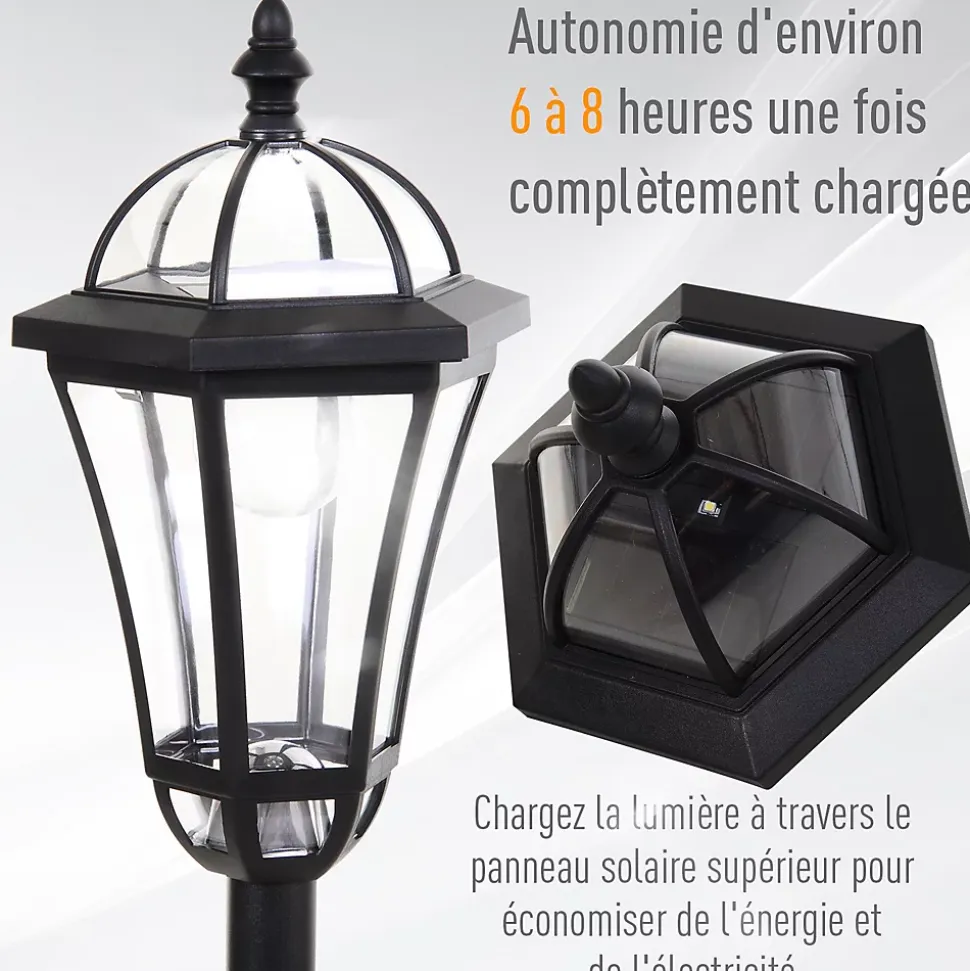 Ce superbe lot de 2 lampadaires LED noir à énergie solaire apportera une touche d’élégance et de romantisme à votre jardin. Dotés d’un système interne de gestion de l’éclairage via détecteur de luminosité, ils illumineront l’espace de votre choix : bordur