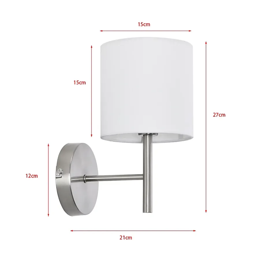 Lot de 3 appliques muralesNotre ensemble de 3 appliques murales au style élégant et intemporel complétera parfaitement la décoration de votre salon, chambre ou bureau. Elles apporteront une ambiance chaleureuse à votre intérieur et s’adaptera facilement à tous les styles et toutes les pièces de vie.Description :- set de 3 appliques murales modernes et stylées- idéales pour toutes pièces de la maison- montage rapide et facile- dotée d’une douille par lampeCaractéristiques techniques :- douille : 1 x E14, max. 40W (livraison sans ampoule)- alimentation : 230V, 50HzMatière :- structure : métal- abat-jour : tissu (100% polyester)Dimensions :- totales (hauteur x largeur x profondeur) : 27 x 15 x 21 cm- abat-jour (hauteur x diamètre) : 15 x 15 cm- support mural (diamètre) : 12 cmCouleur :- structure : argent- abat-jour : blancContenu de la livraison :3 x appliques murales (l’ampoule ne fait pas partie de l’offre)Produit de la marque :lux.pro