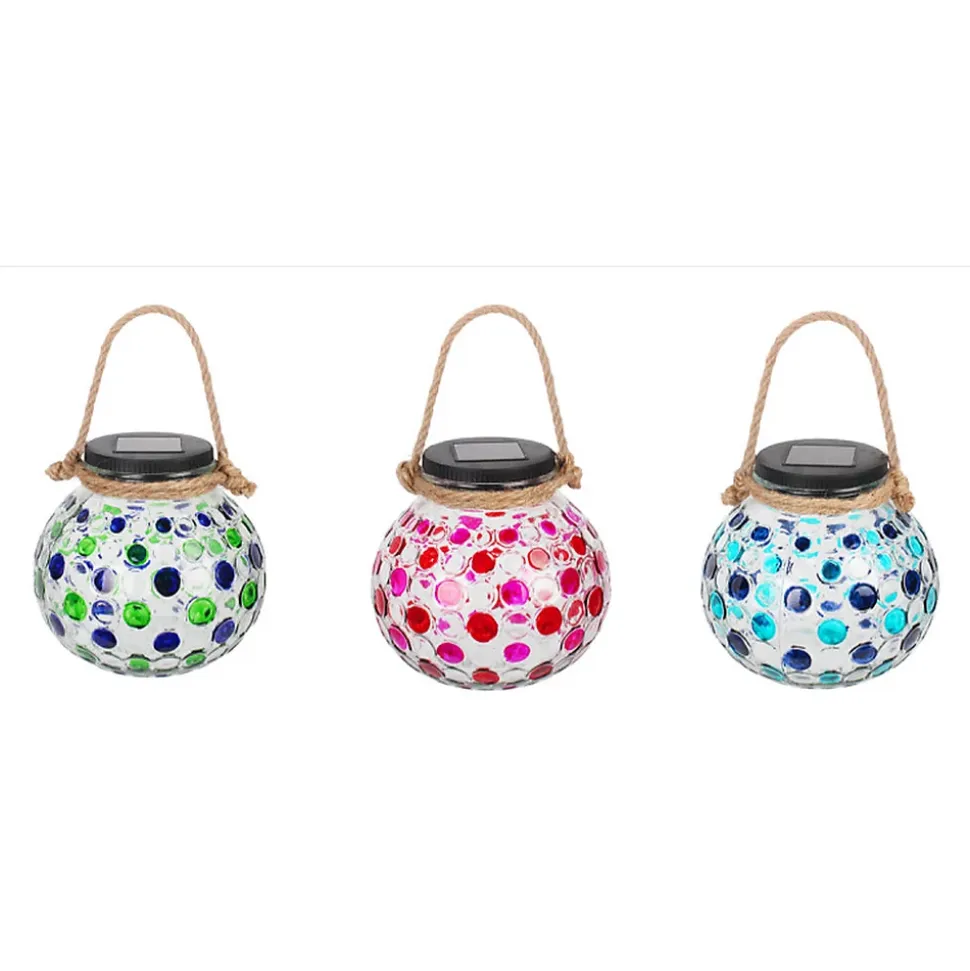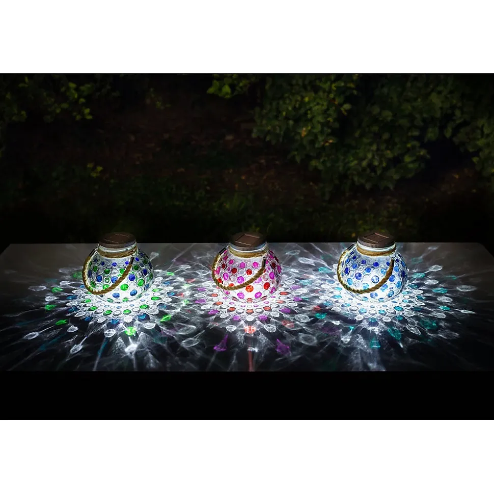 Lot de 3 décoration de table à énergie solaire – effet 3D(1 pièce par coloris : vert, rouge et bleu)Cette référence existe également à l’unité, voir les pages respectives.Matière : verreNombre de Lumens : 4Durée maximum d’éclairage : 8 heuresInterrupteur on,offLED : 1 LED blancheBatteries rechargeables : 1 x 200mAh Ni-Mh AADimensions produits : (voir le schéma technique parmi les images)H : 220 , 138 mm – Dia: 15 mm