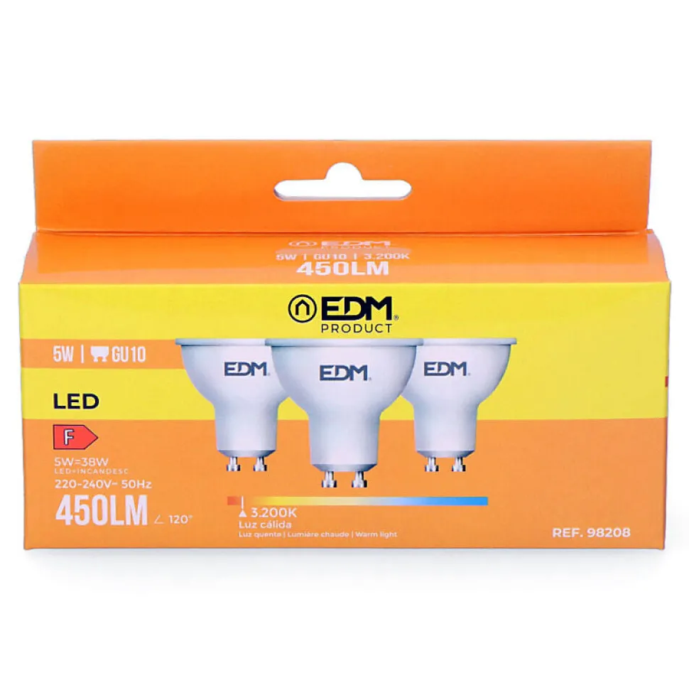 Spot LED GU10 5W lumière équivalente à 45W. Teinte de lumière : Blanc Chaud 3200K – angle d’éclairage à 120°. Flux lumineux de 450lm avec un allumage immédiat. Dimensions : hauteur : 5,4cm ф4,7cm – forme : Dicroïque. Longue durée de vie : 25000h, classe énergétique A+. Garantie 2 ans. Branchement AC220-240V. 3200K 5W 450lm 45W 120° 25000h