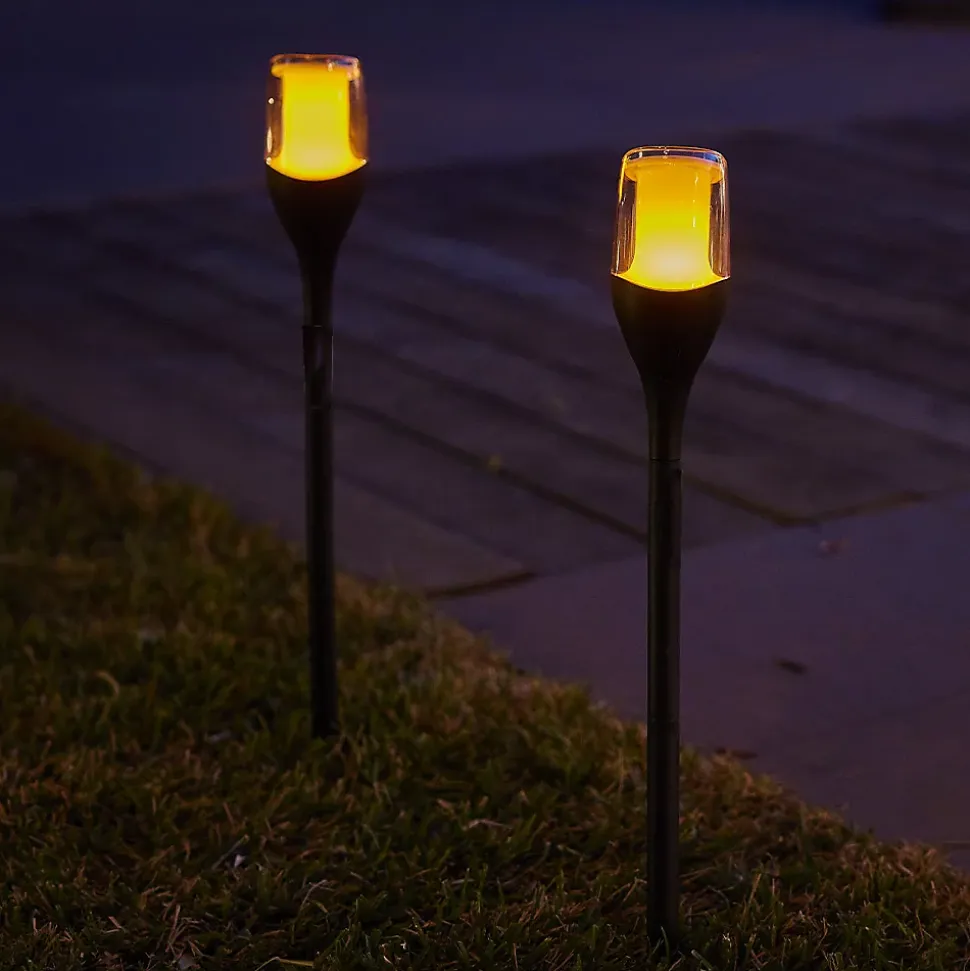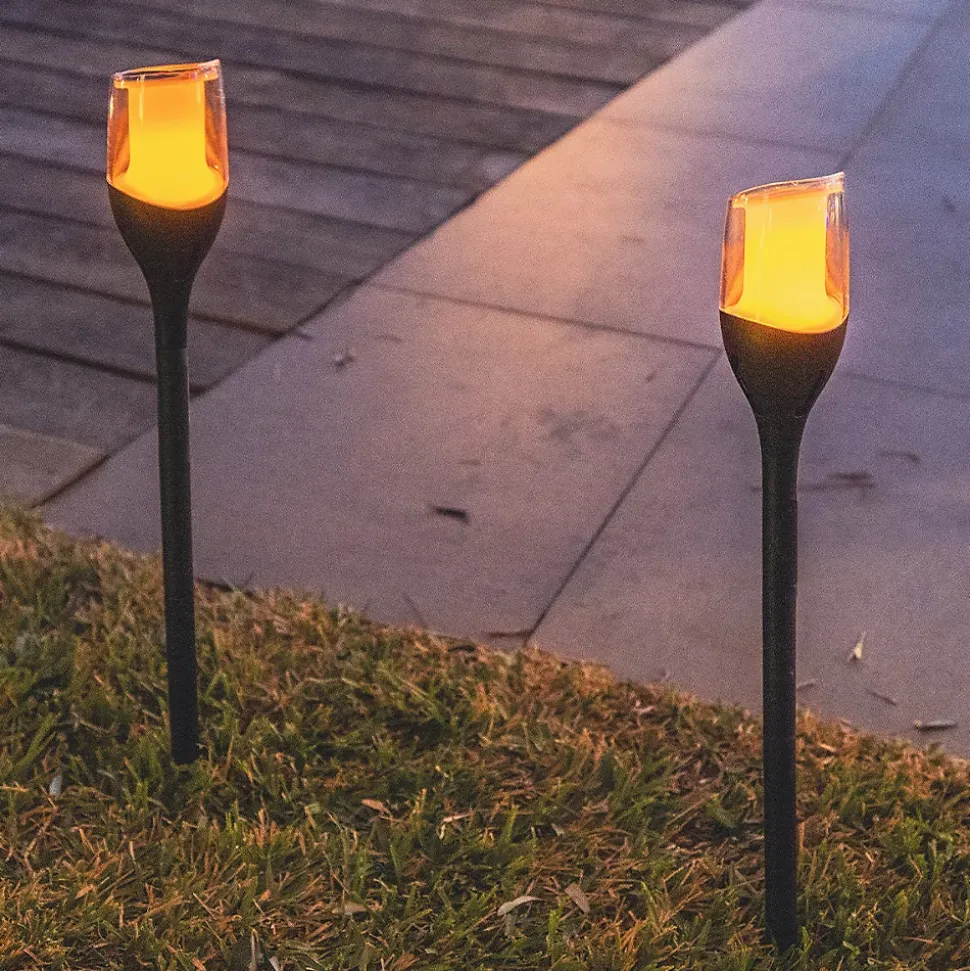 Le lot de 4 torches solaires LED 4x Farely propose un éclairage blanc chaud effet flamme pour une ambiance chaleureuse. Leur design transparent laisse apparaître le mouvement de la lumière, idéal pour baliser une allée ou structurer votre jardin. Elles disposent d’une autonomie technique de 16 heures après une charge solaire de 6 à 8 heures quotidienne chaque jour. Grâce au capteur crépusculaire intégré, l’activation est automatique dès la tombée de la nuit. D’une hauteur de 64, 5 cm, elles se plantent simplement dans le sol pour une décoration immédiate. Certifiées IP65, elles sont protégées contre les intempéries et les rayons UV durablement. Chaque unité délivre un flux de 20 lumens. Son style intemporel s’accorde aussi bien avec une décoration moderne qu’avec un esprit plus bohème ou industriel. Pour un effet encore plus chaleureux, combinez-la avec d’autres sources de lumière et variez les hauteurs.
