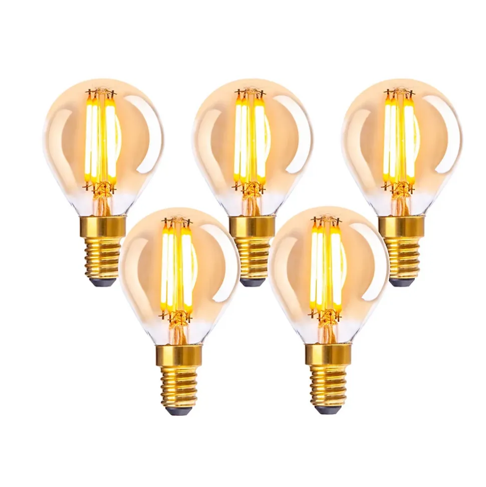 Avec ce set de 5 ampoules LED ‘DILLY’, vous êtes parfaitement équipé pour tous les luminaires à culot E14. Misez sur des ampoules de qualité supérieure pour un éclairage optimal. Nos produits se distinguent par leur qualité supérieure et leur longue durée de vie. De plus, vous économisez de l’énergie. Ampoule de style industriel, XXX et décorative, elle a de l’allure et fait ce qu’elle doit faire et ce, assez longtemps. L’ampoule est en métal et en verre et est disponible en ambre. L’article a une dimension de 4,5 cm x 4,5 cm et une hauteur de 7,8 cm. Cette ampoule est adaptée aux douilles E14 et assure un éclairage lumineux et efficace sur le plan énergétique grâce à 5 LED efficaces. L’intensité de l’ampoule peut être réglée. Avec une puissance totale de 20 watts, cette ampoule vous offre une lumière d’une luminosité de 1550 lumens. La lumière a une couleur de 2000 kelvins. Ce produit appartient à la classe 2 et a un indice de protection IP20.