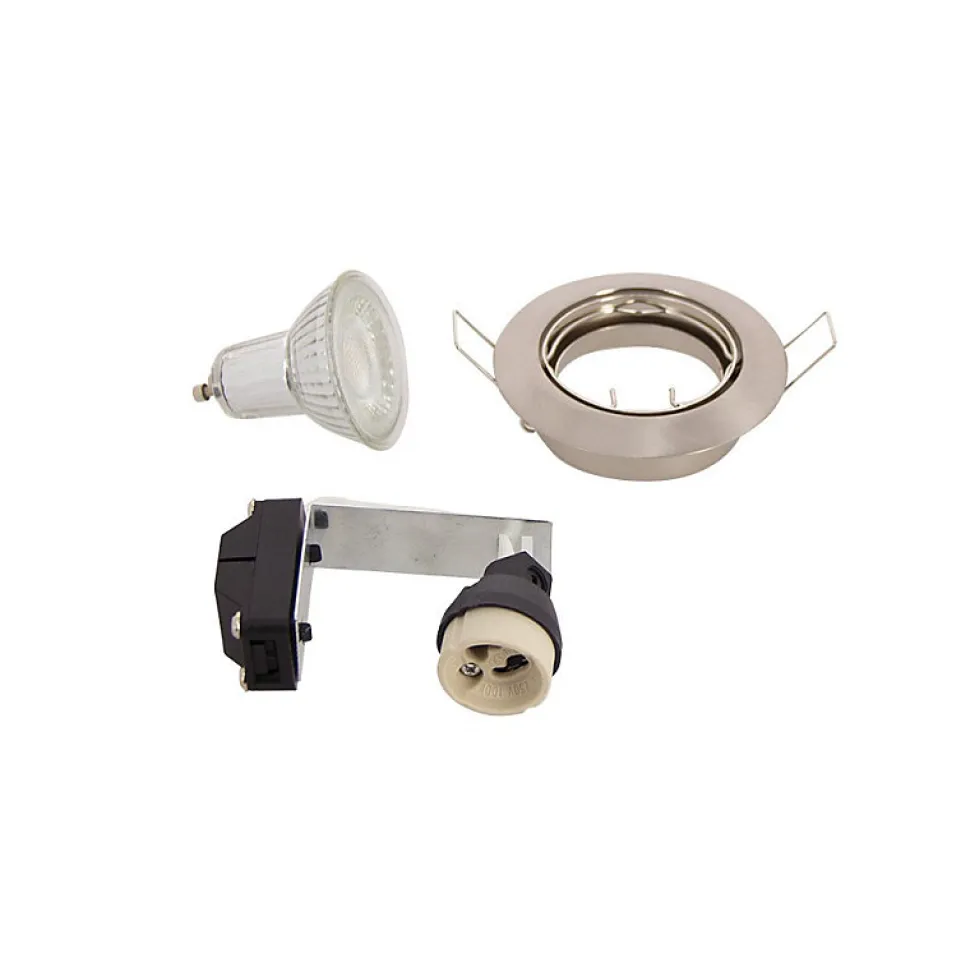 Xanlite – Lot de 5 Spots Encastrés Metal brossé – ORIENTABLE – Ampoule LED GU10 incluses – cons. 4W (eq. 50W) – 345 lumens – Blanc neutre – PACK5SP50ASCW