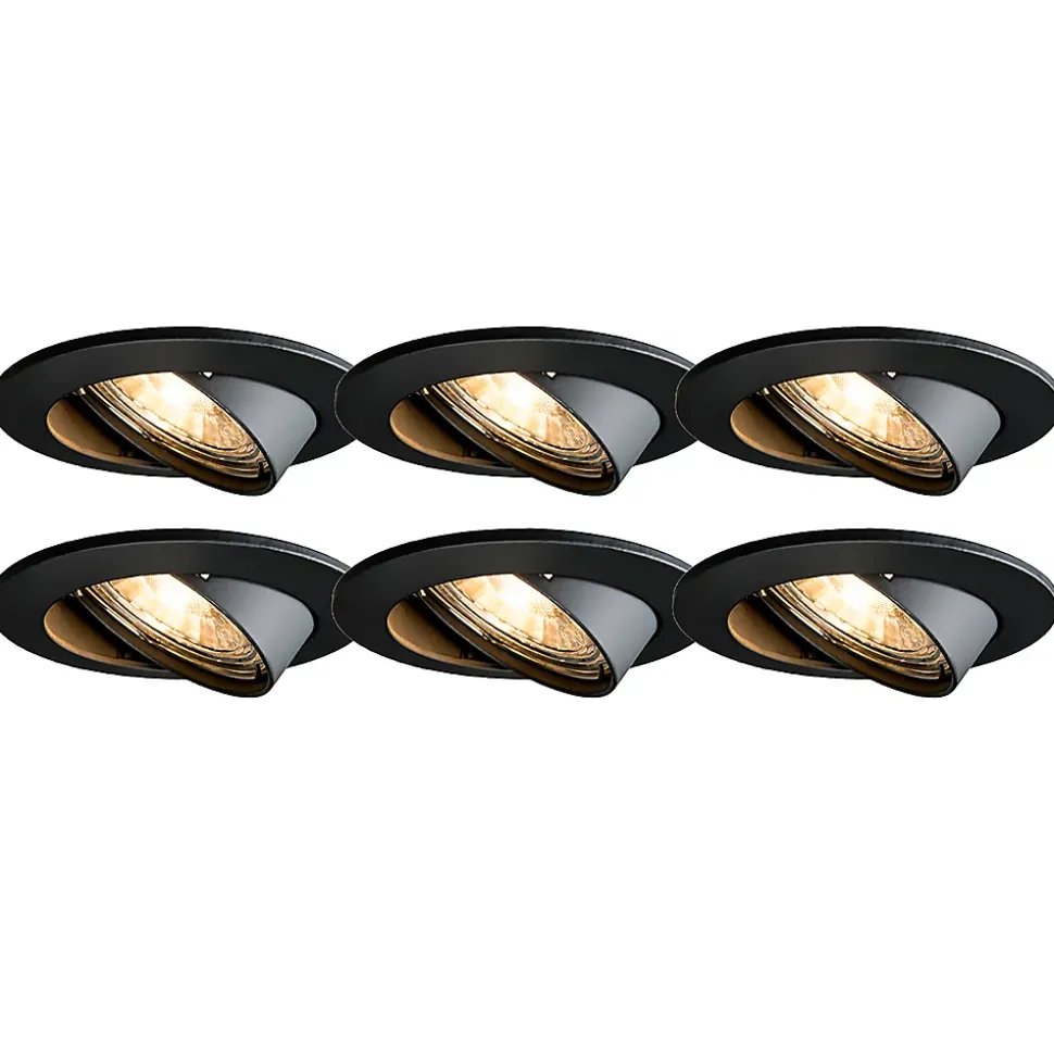 Ce lot de spots encastrés Edu s’intègrera parfaitement à tous les intérieurs. Son diamètre est de 8,2 cm et sa hauteur de 10 cm. Le diamètre d’installation est de 7,4 cm et la profondeur d’installation de 11 cm. Ce spot encastré est fabriqué en métal avec de l’aluminium, dans une couleur noire, et arbore un look luxueux et de haute qualité. Il est doté d’un culot GU10. Vous pouvez le compléter avec six ampoules GU10 d’une puissance maximale de 50W. Ces ampoules doivent être commandées séparément. Un atout supplémentaire appréciable de ce spot encastré est sa possibilité d’orientation, vous permettant d’éclairer votre espace comme bon vous semble ! L’Edu est également compatible avec un variateur d’intensité (non inclus). Simple mais tellement élégant dans votre plafond, cet Edu. Encore plus abordable en lot de 6.