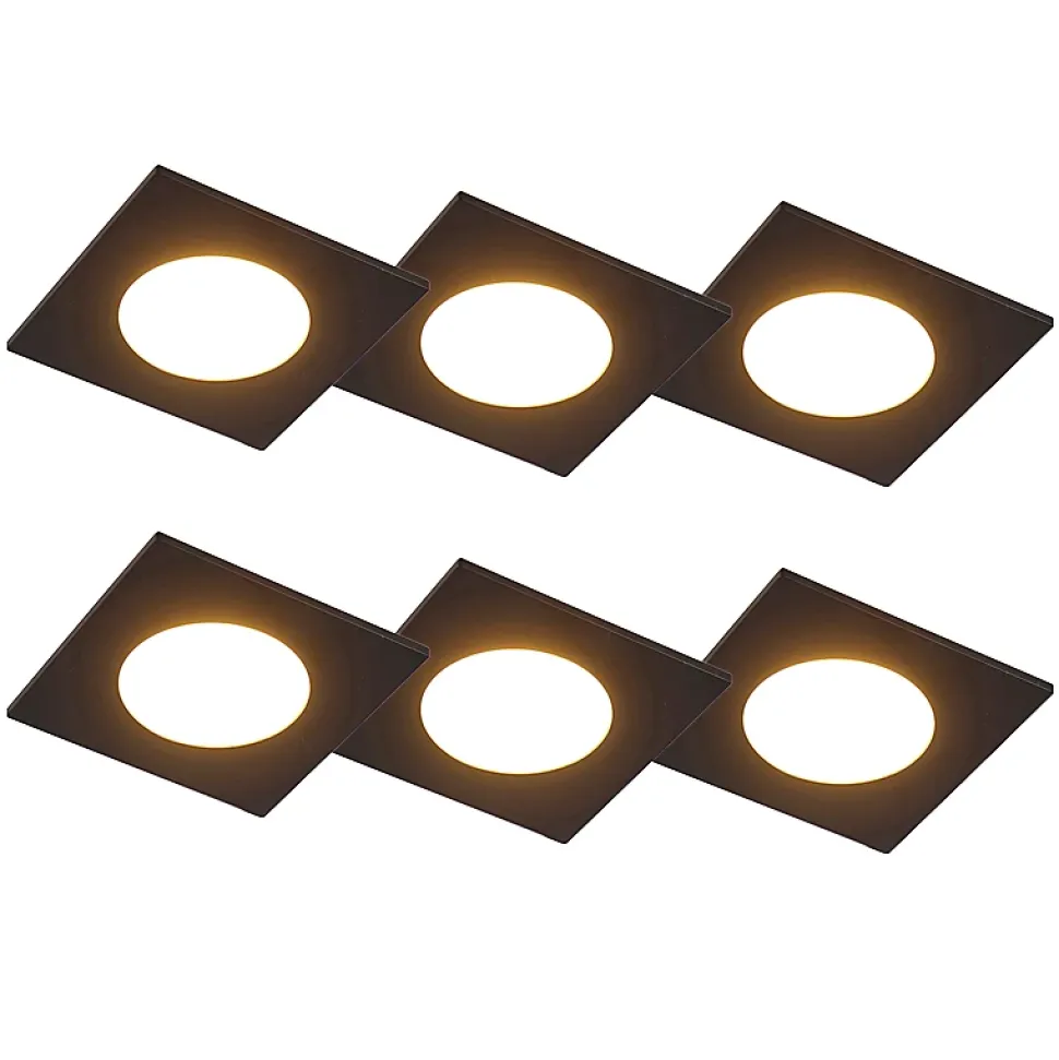 Ces spots encastrés modernes s’intègrent parfaitement à un intérieur élégant. Si vous recherchez des spots encastrés carrés noirs, ne cherchez plus. Les spots encastrés Simply sont proposés par lot de 6 et sont fabriqués en plastique noir. Ils mesurent 9 cm de long, 9 cm de large et 4,8 cm de haut. Les dimensions d’installation ont un diamètre de 7 cm et une profondeur de 7 cm. Ils sont dotés d’ampoules LED (non remplaçables). Un spot émet 350 lumens de lumière. Ils sont à intensité variable à 3 niveaux, ce qui vous permet de choisir l’intensité de la lumière. De l’éclairage d’ambiance à la lumière fonctionnelle. Les ampoules ont une température de couleur de 2 700 Kelvin, ce qui donne une lumière blanc chaud supplémentaire. Avec un indice de protection IP65, ils sont résistants aux éclaboussures et peuvent supporter des jets d’eau. Ces spots noirs ajoutent une touche moderne à toutes les pièces !