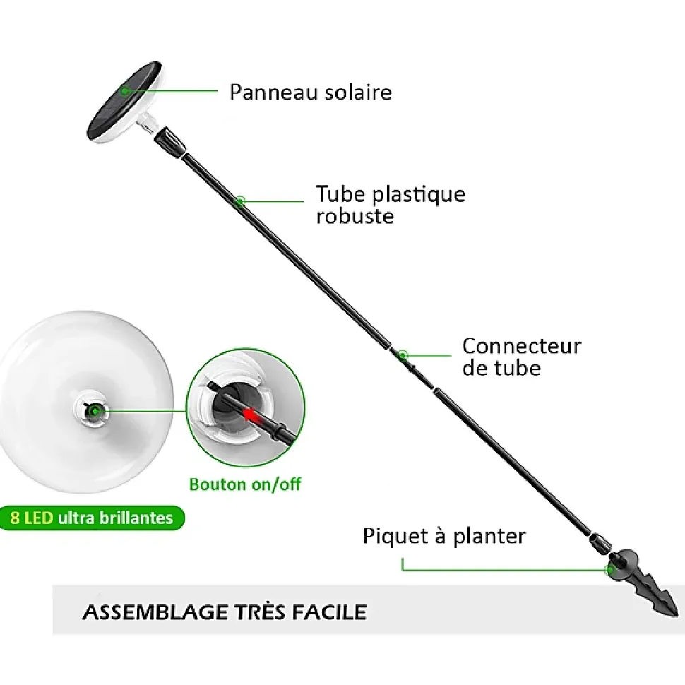 - Fonctionnalité pratique : Dotés d’un bouton ON/OFF pour une gestion flexible, ils s’allument automatiquement à la tombée de la nuit et s’éteignent au lever du jour pour un usage simplifié.