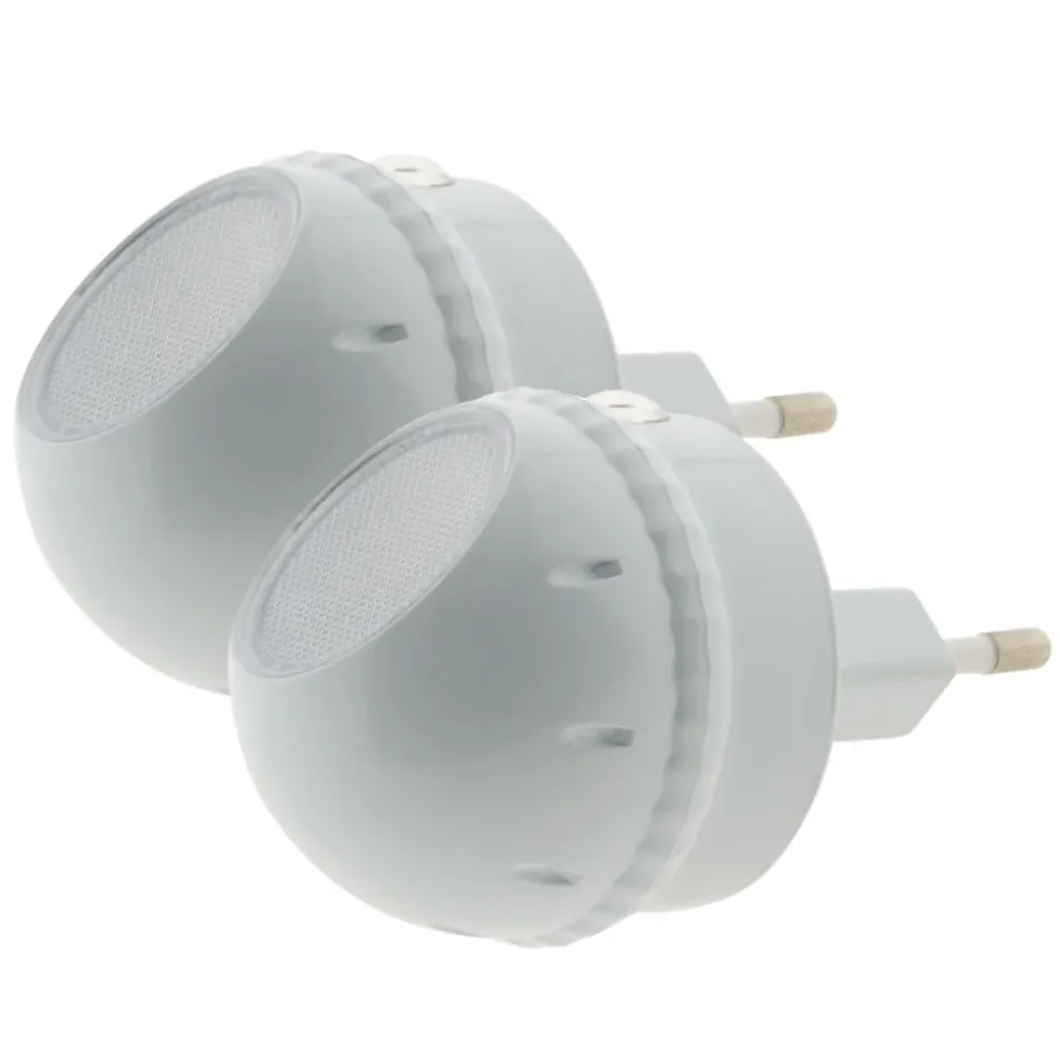Lot de 2 veilleuses LED orientables à 360° – OtioCette veilleuse orientable à 360° diffuse une lumière douce permettant aux enfants de s’endormir en toute sérénité. Équipée d’un capteur jour/nuit, cette veilleuse Otio s’allume automatiquement à la tombée du jour. Très pratique, elle est orientable à 360° et permet d’ajuster la zone de diffusion de la lumière.Grâce à sa technologie LED, elle ne nécessite pas de changement d’ampoule et affiche une consommation d’énergie particulièrement basse. Simple d’utilisation, il suffit de la brancher sur une prise de courant.Caractéristiques: Alimentation : 230V – 50Hz Puissance LED consommée : 1W IP20, Classe II.