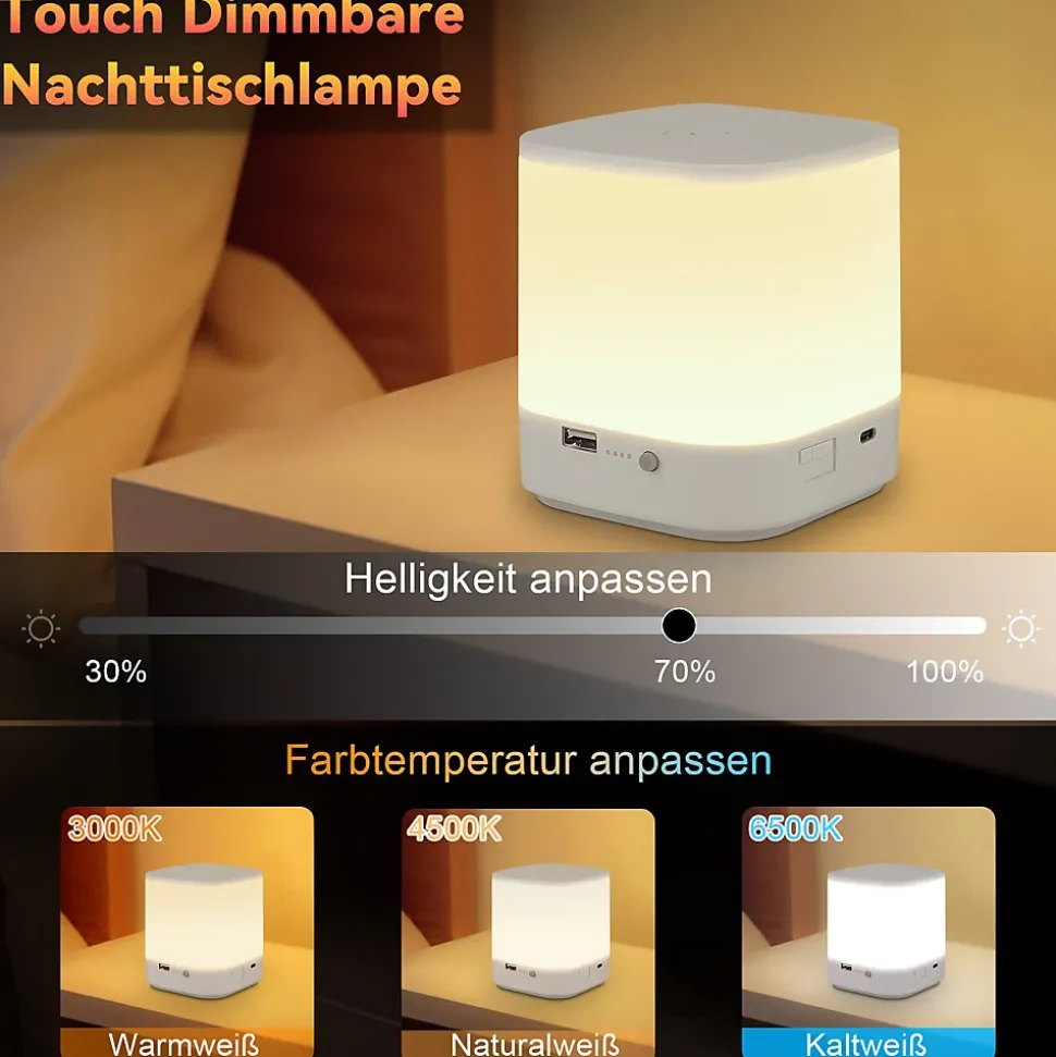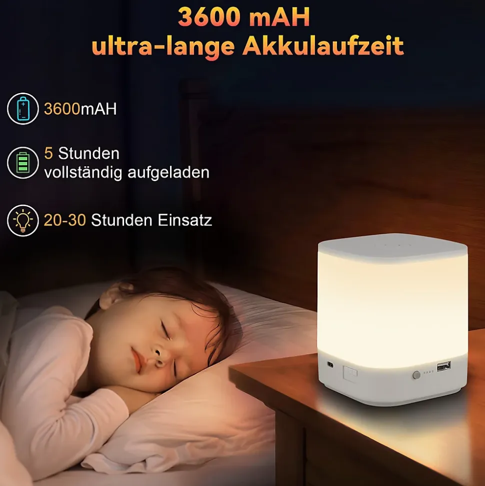 [Lampe de chevet multifonctionnelle] La lampe de chevet LED est dotée d’une gradation tactile et de 3 températures de couleur (3000K-4500K-6000K) pour trouver l’atmosphère d’éclairage la plus agréable selon votre humeur et répondre facilement à vos besoins de détente quotidienne, de sommeil et de soins nocturnes.[Source de lumière douce] La lampe de table sans fil a une lumière douce et agréable, est 100 % sans scintillement, protège les yeux des enfants et des personnes âgées et est très adaptée à l’éclairage nocturne.[Fonction minuterie] Appuyez longuement sur le bouton de minuterie de la lampe de chevet à piles pour régler la veilleuse pour enfants afin qu’elle s’éteigne automatiquement après 15 min/30 min/1 h. C’est le choix idéal pour les soins de bébé, dormir dans la chambre des enfants et le camping en plein air.[Autonomie de la batterie extra longue] La lampe de chevet à intensité variable dispose d’une batterie au lithium intégrée de 1800 mAh qui peut être complètement chargée en seulement 3 heures. peut être complètement chargé et dure jusqu’à 17 à 80 heures, dites adieu aux tracas des charges fréquentes. De plus, la lampe tactile est équipée d’un port de chargement USB pour permettre le chargement des téléphones portables et des tablettes.[Cadeau idéal] La lampe de table LED est un cadeau parfait pour les amis et la famille, parfaite pour créer une atmosphère relaxante dans la chambre, la chambre de bébé, le bureau et le camping, même pendant le yoga, au restaurant ou lors d’un pique-nique en plein air.: