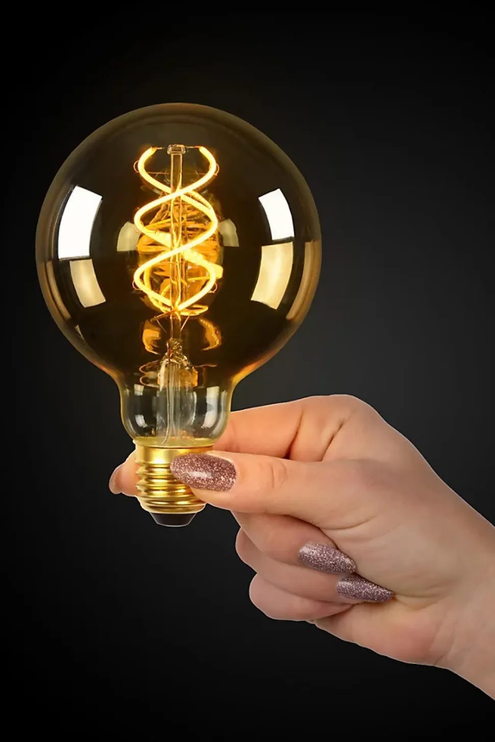 Une ampoule LED avec le look vintage d’une lampe à incandescence ou à filament. Voici la LED Bulb. Le verre ambré de la lampe et les filaments visibles donneront à toutes les lampes une apparence unique. Avec sa lumière blanche chaude, elle contribuera à des soirées agréables dans un intérieur confortable avec vos amis ou en famille. Les filaments de carbone forment une spirale décorative. LED Bulb est également dimmable. Le caractère économe en énergie de la lampe garantit une consommation d’énergie réduite.Caractéristiques uniques:• Type d’ampoule: E27 / Led• Consommation énergétique: 4,9W / 230V• Flux lumineux de 380 lumen• Dispose d’une lumière blanche très chaude (2200K)• Ampoule a intensité variablePourquoi choisir l’éclairage Lucide?Lucide incarne un design innovant, un savoir-faire artisanal et une fiabilité exemplaire. En tant qu’entreprise familiale belge avec plus de trois décennies d’expertise, nous concevons des éclairages de haute qualité qui enrichissent et transforment chaque espace, tant intérieur qu’extérieur. Notre collection polyvalente comprend des luminaires durables et des sources lumineuses économes en énergie, soigneusement conçus par nos propres experts et fabriqués selon les normes CE les plus strictes. Grâce à notre large gamme, nous vous proposons toujours une solution d’éclairage adaptée, quel que soit le style ou l’espace. Ainsi, nous illuminons non seulement votre espace de vie mais aussi votre processus de choix dans la recherche d’un éclairage de qualité et abordable. Chez Lucide, nous combinons innovation et savoir-faire pour un éclairage qui ajoute non seulement de l’ambiance, mais transforme chaque maison en foyer.