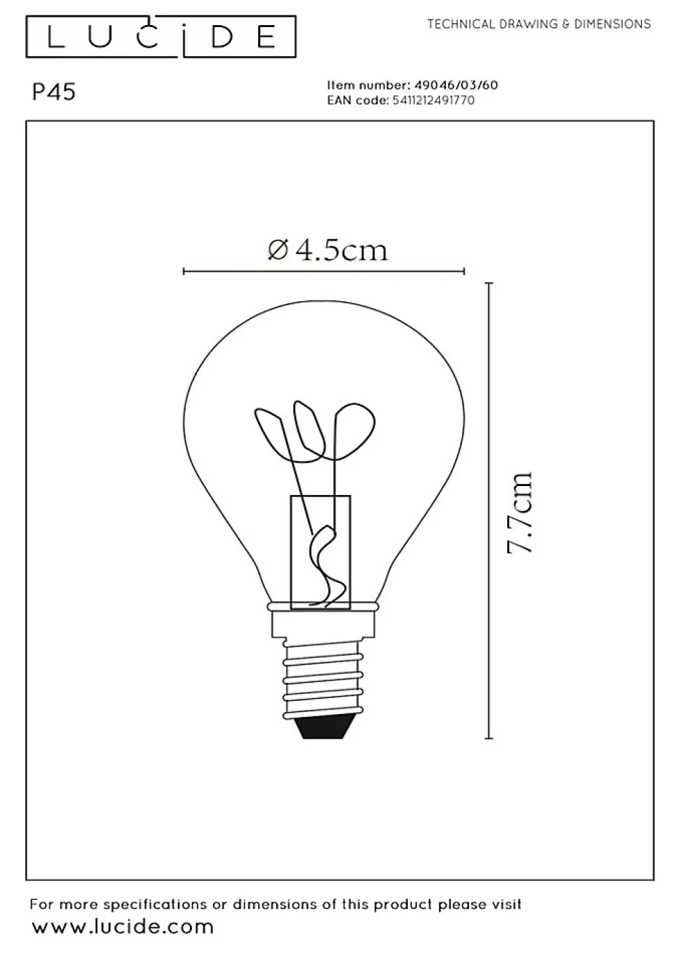 Lucide vous propose des ampoules de style vintage de formes et de tailles diverses. Du plus large au plus fin, nos ampoules peuvent être adaptées à tous les raccords, y compris le très fin E14. Faites de vrai verre et d’un filament bien visible constitué de LED parmi les plus récentes, ces luminaires à filament donneront du cachet à votre ambiance d’intérieur. Version revisitée de la bonne vieille ampoule d’Edison, l’ampoule vintage LED éclaire d’une lumière blanche chaude modulable (2700K), avec une puissance lumineuse remarquable (210 lumens) pour une consommation des plus basses (3W). Beau et fonctionnel à la fois, se marie harmonieusement avec tous nos modèles, spots exceptés.Caractéristiques uniques:• Type d’ampoule: E14 / Led• Consommation énergétique: 3W / 230V• Flux lumineux de 210 lumen• Blanche chaude (2700K)• Ampoule a intensité variablePourquoi choisir l’éclairage Lucide?Lucide incarne un design innovant, un savoir-faire artisanal et une fiabilité exemplaire. En tant qu’entreprise familiale belge avec plus de trois décennies d’expertise, nous concevons des éclairages de haute qualité qui enrichissent et transforment chaque espace, tant intérieur qu’extérieur. Notre collection polyvalente comprend des luminaires durables et des sources lumineuses économes en énergie, soigneusement conçus par nos propres experts et fabriqués selon les normes CE les plus strictes. Grâce à notre large gamme, nous vous proposons toujours une solution d’éclairage adaptée, quel que soit le style ou l’espace. Ainsi, nous illuminons non seulement votre espace de vie mais aussi votre processus de choix dans la recherche d’un éclairage de qualité et abordable. Chez Lucide, nous combinons innovation et savoir-faire pour un éclairage qui ajoute non seulement de l’ambiance, mais transforme chaque maison en foyer.