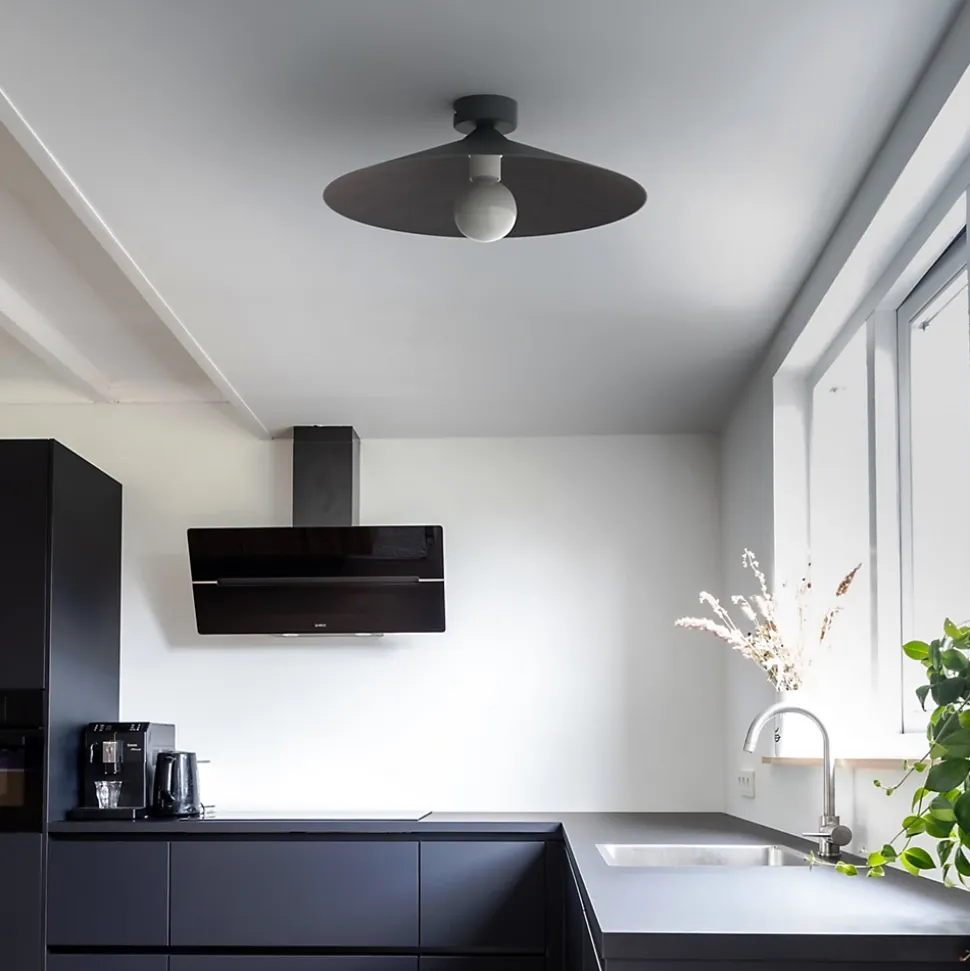 Le plafonnier CHAPEAU est un luminaire adapté aux intérieurs, équipé d’une douille pour ampoules E27. Chapeau, au design moderne et particulier, est composé d’un pavillon et d’un diffuseur en métal. Peint à la poudre époxy, Chapeau est disponible en deux tailles : 25 et 40 centimètres de diamètre. Le produit, disponible en plusieurs versions monochromes et en versions feuille d’or, d’argent et de cuivre, peut être personnalisé en fonction des besoins individuels de nos clients grâce à la production « just in time » de notre entreprise. 80% des composants de Chapeau sont remplaçables en cas de dommage, conformément à la norme sur l’écodesign entrée en vigueur depuis septembre 2021. Le plafonnier Chapeau est entièrement fabriqué dans nos usines avec des produits et des éléments 100% Made in Italy.