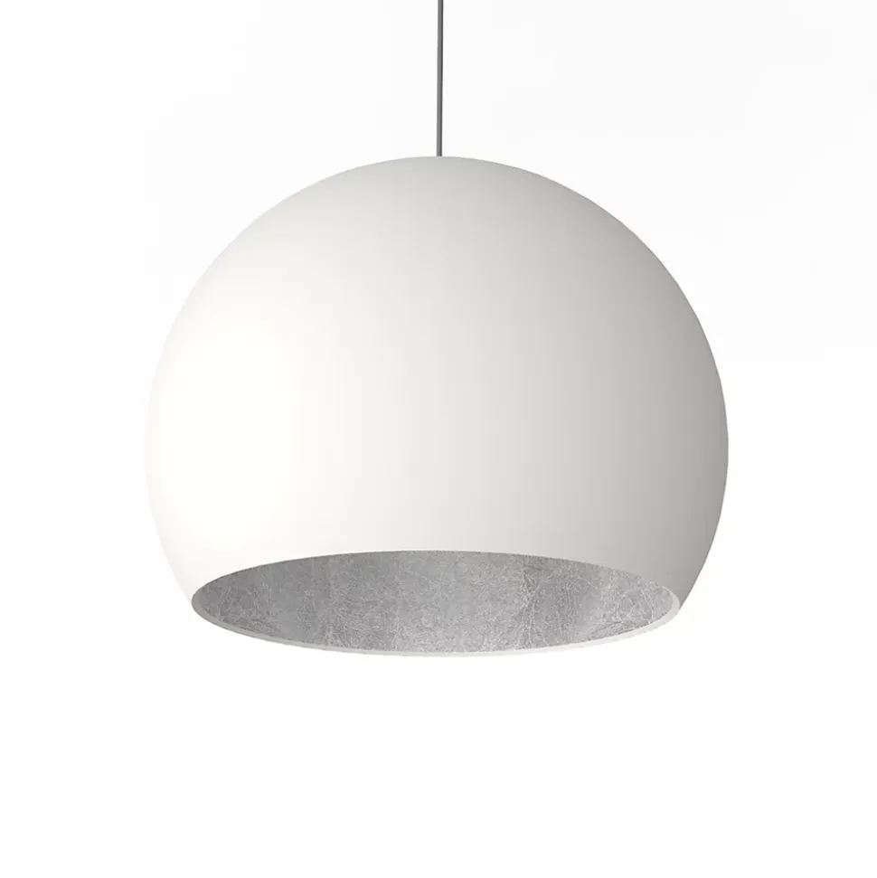 Joe est une lampe à suspension en métal peint avec intérieur en feuille de métal appliquée à la main. La forme caractéristique de la sphère sectionnée rend cet article adapté à la plupart des environnements, sans jamais être déplacé. Existe en version 25cm, 40cm et 50cm.