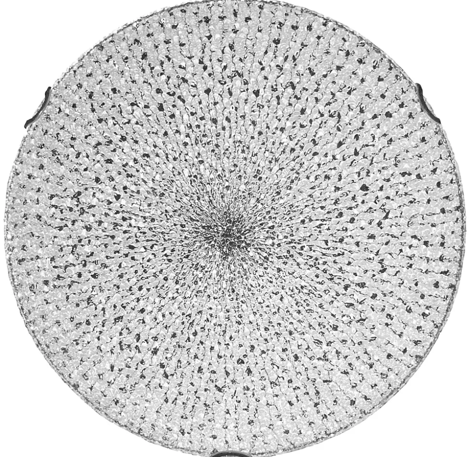 Plafonnier d’intérieur avec diffuseur en verre sablé et sérigraphié. Crochets en métal émaillé avec système de verrouillage à ressort. LED INTEGREE à haute efficacité énergétique.