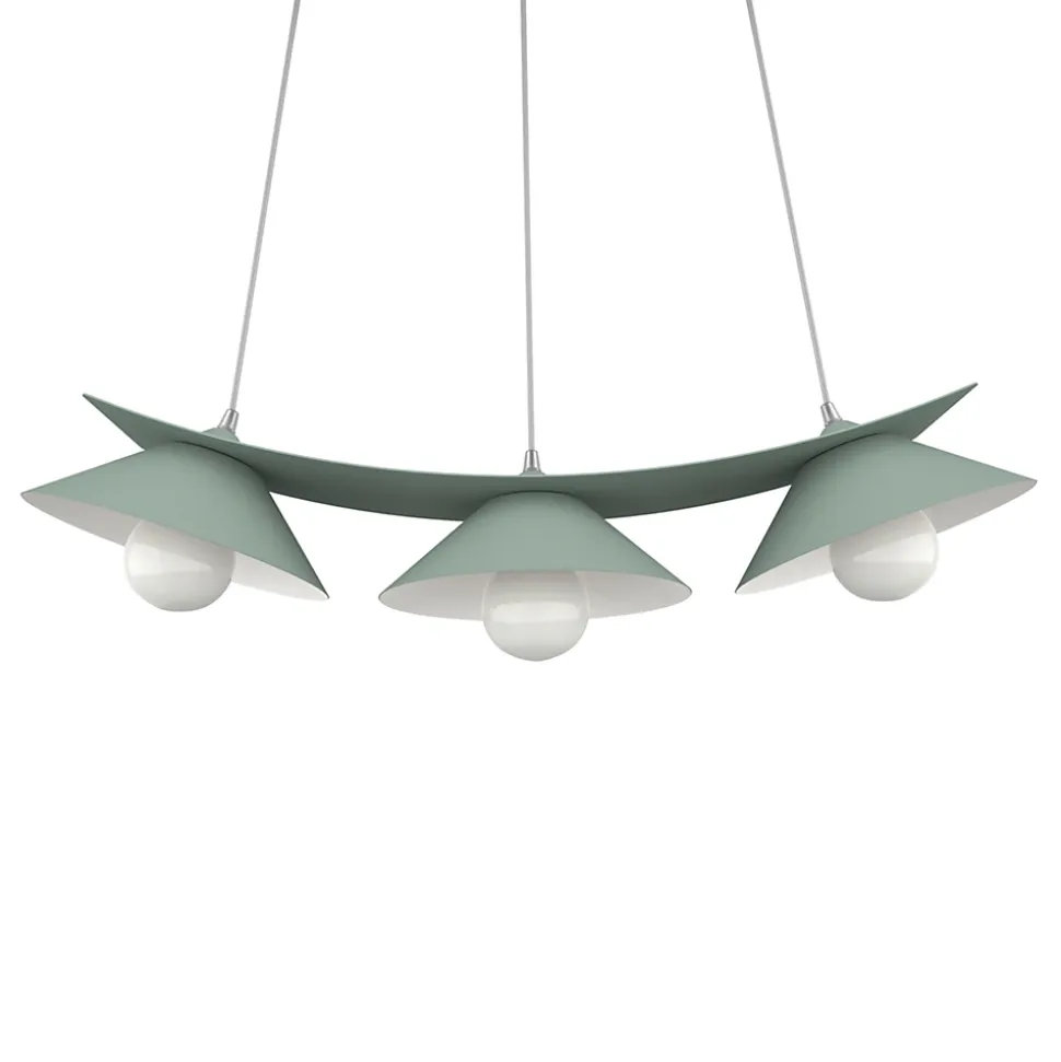 Miller est une lampe à suspension à l’aspect moderne et distinctif. La plaque incurvée soutient les diffuseurs placés en dessous, donnant un effet de forme particulier qui caractérise le produit par rapport au reste. Le produit est entièrement peint avec de la poudre époxy et est équipé d’un support de lampe E27 et de câbles d’alimentation en PVC transparent.