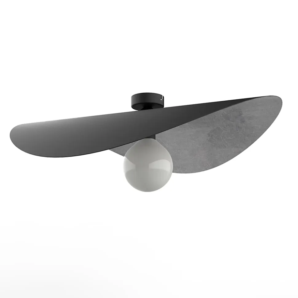 LUMICOM – PIUMA Plafonnier, 1X E27, max 42W, métal, noir mat/feuille argent, D.60cm