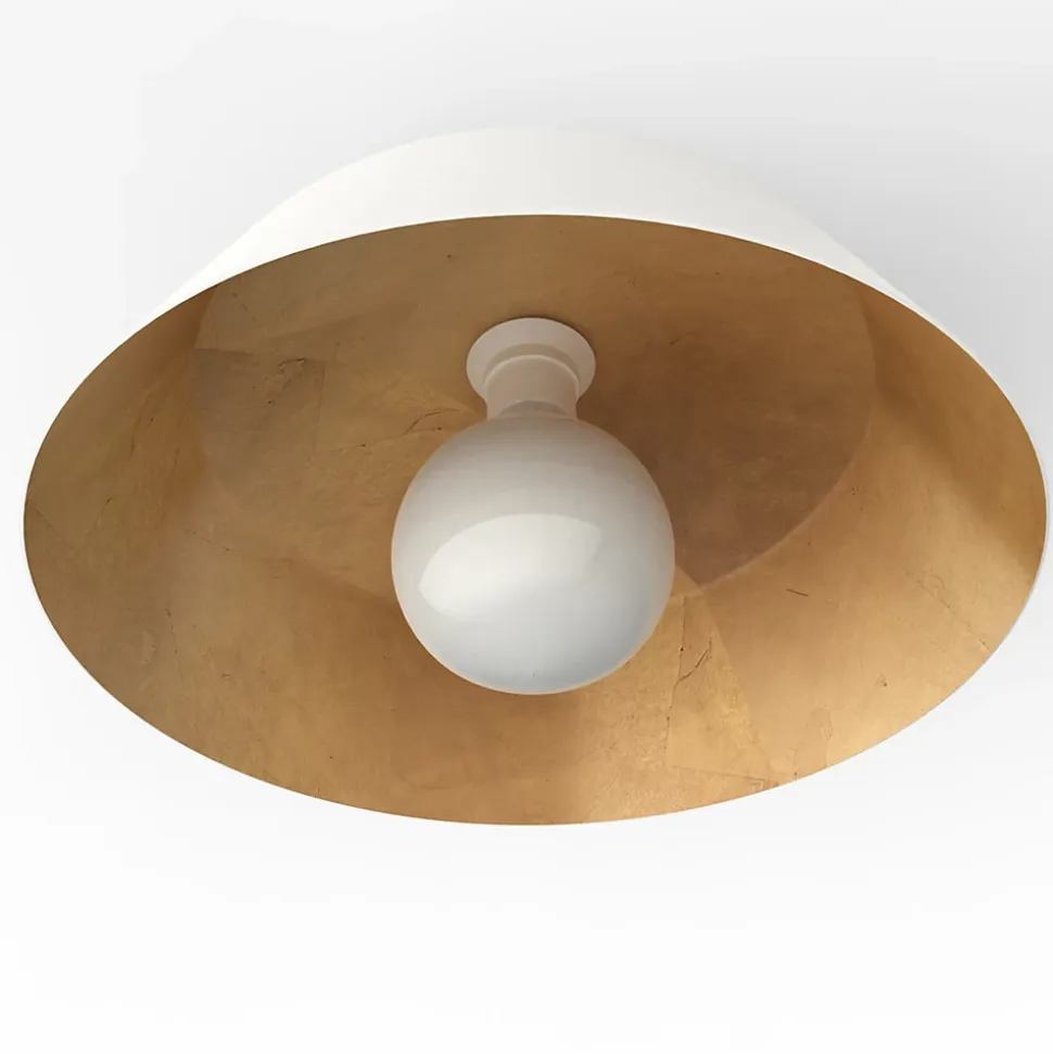 Le plafonnier TOKYO est un article d’éclairage adapté aux intérieurs équipé d’une douille E27 et d’un diffuseur en métal peint à la poudre époxy. Disponible en diamètres 35 et 50 centimètres, le plafonnier Tokyo se caractérise par un diffuseur de lumière au design simple et contemporain. Dans cette version, le produit a une finition à la feuille métallique (or, argent ou cuivre) appliquée à l’intérieur des diffuseurs par nos artisans. Comme tous nos luminaires, Tokyo peut également être personnalisé selon les besoins individuels de nos clients grâce à la production « just in time » de notre entreprise. Tous les composants Tokyo sont remplaçables en cas de dommage conformément à la norme sur l’éco-design entrée en vigueur depuis septembre 2021. Tokyo est entièrement fabriqué dans nos usines avec des produits et éléments 100% Made in Italy.
