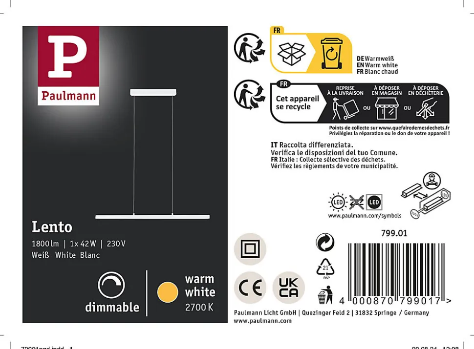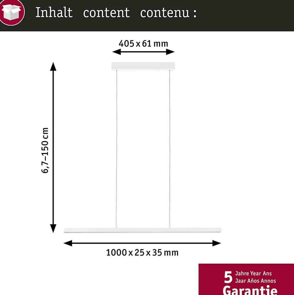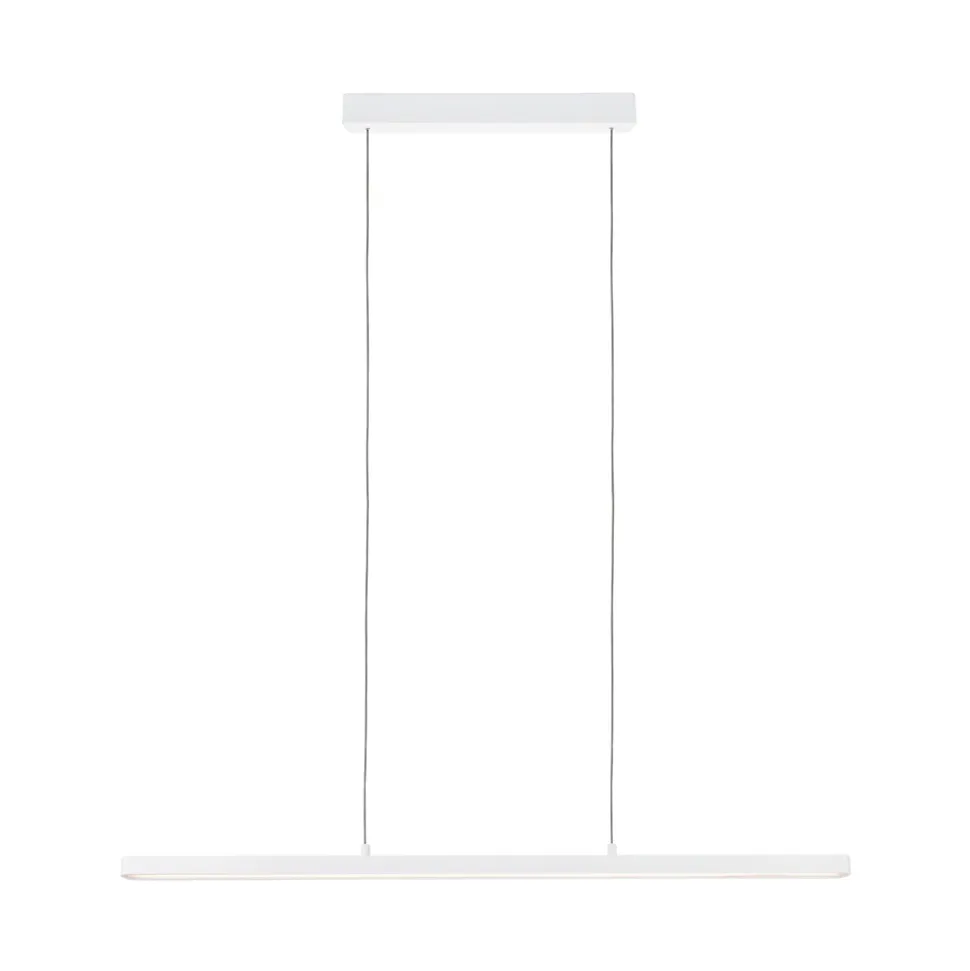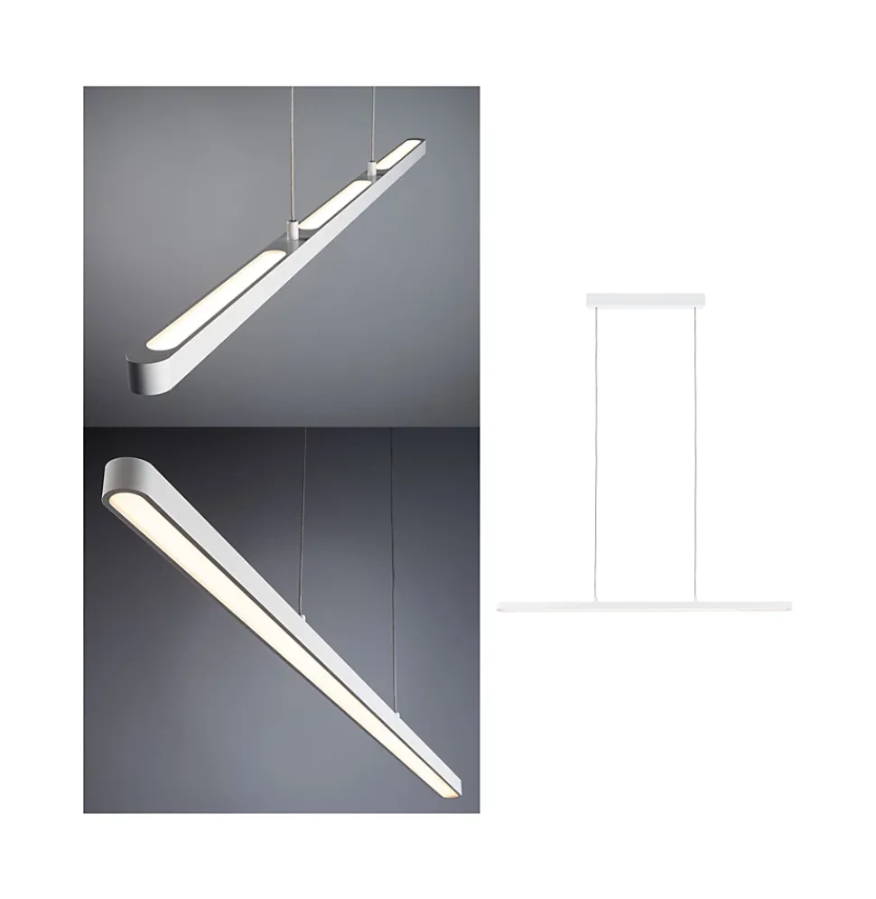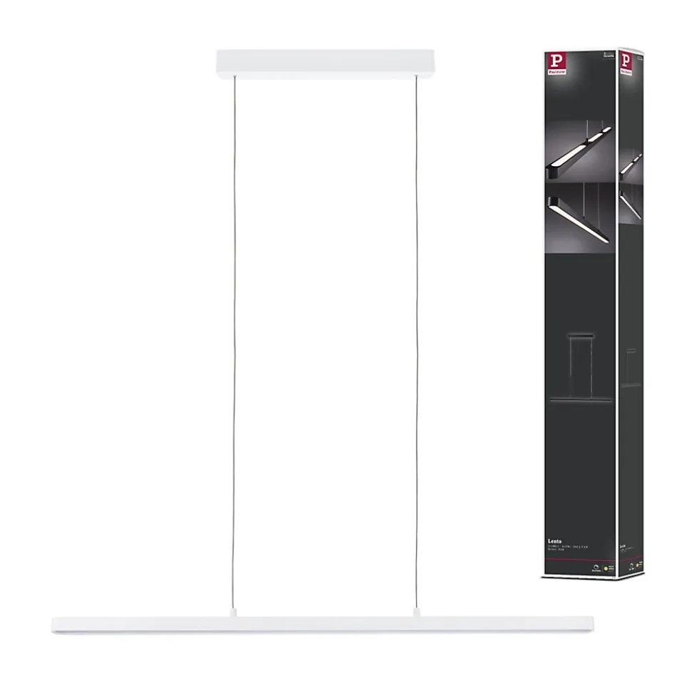Rectiligne, moderne et technique : voici le luminaire en suspension Lento en Blanc dépoli, réglable en hauteur. Elle convainc par son flux lumineux élevé et diffuse la lumière aussi bien vers le haut que vers le bas. L’éclairage peut être diminué par le variateur mural.