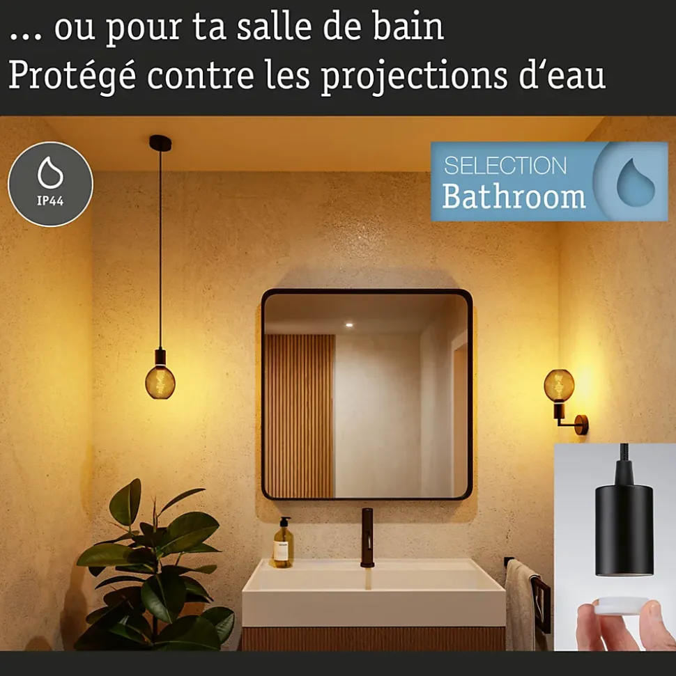 Câble gainé de tissu|Protection contre les projections d’eau IP44, pour salle de bains|Ampoule E27 jusqu’à 60 watts max.|Ne pas oublier : Commandez l’ampoule adaptée en même temps !
