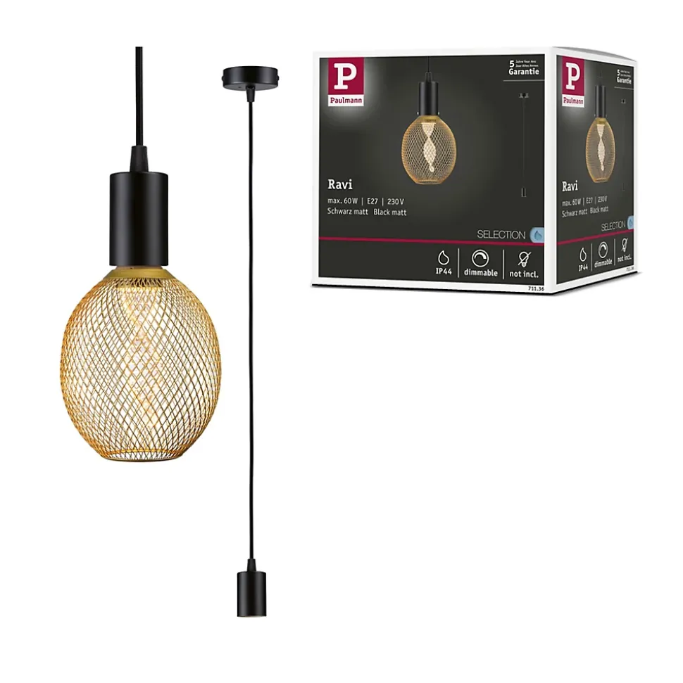 L’effet Mix & Match résolument tendance permet d’embellir l’intérieur avec un accroche-regard original. Le luminaire en suspension moderne Ravi en Noir mat en est l’illustration parfaite. Avec son design moderne minimaliste et sa combinaison de coloris attrayante, cette pièce phare est du plus bel effet dans un intérieur. En combinaison avec les ampoules décoratives de Paulmann, il forme le duo parfait. Le luminaire offre un effet particulièrement harmonieux lorsqu’il est associé à des ampoules des séries White Lampion ou Metallic Glow. Les ampoules équipées de culot E27 et de max. 60 watts offrent une autre alternative. Grâce à la protection IP44, l’applique Ravi peut même être utilisée dans la salle de bain. Selon l’ampoule utilisée, la lampe est dimmable.