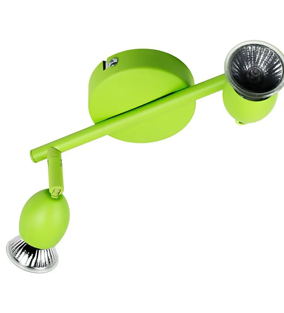 Luminaire Plafonnier Rampe 2 Spots orientables et inclinables 2 x 42 WApplique murale en métal vert – Ampoules GU10 42 W fourniesIlluminez votre intérieur avec cette réglette 2 Spots orientables au design soigné et aux lignes épuréesCompatible avec les ampoules LED, halogène, fluo compact, économie d’énergie.Descriptif :Type : Réglette 2 Spots orientables et inclinablesCouleur : VertLongueur : 23 cmProfondeur : 13 cmType culot : GU10Puissance max : 2 x 42 WType d’ampoules : HalogènesAmpoules fournies : OuiTension : 230 V- 50. HzCompatibilité avec ampoules LED et économie d’énergieLivré avec :- 1 rampe 2 Spots- 1 notice d’utilisation- Accessoires de fixation- 2 ampoules halogènesCe que nous aimons :Cette rampe luminaire 2 spots verte apportera design et modernité à votre intérieur.Les 2 spots orientables assureront puissance et confort pour une luminosité optimisée et éléganteCette applique 2 spots halogène est également compatible LED, pour une durée de vie des ampoules plus longue et une économie d’énergie plus importante.Cette réglette 2 lumières peut également se fixer au plafond