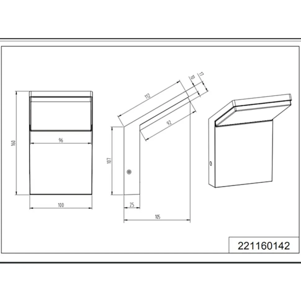 Fonte d’aluminium · AnthraciteDiffuseur Plastique · BlancDimensions produitLargeur: 10cmHauteur: 16cmProfondeur: 10cmPoids: 0,415kgDonnées techniquesAmpoules: SMD – LED (intégré)Watt: 8WLumen: 1x 900lmKelvin: 3000KIndice de rendu des couleurs (CRI): > 80 CRIDurée de vie: 30000HCycles de commutation: 20000x ON/OFFTension de fonctionnement: 230V ~ 50HzDegré de protection: 1Classification IP: IP54