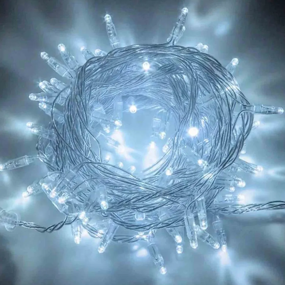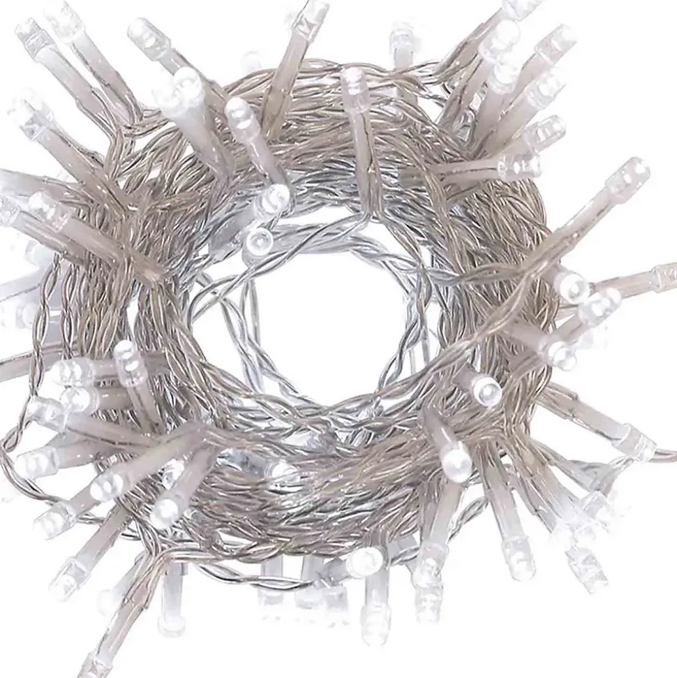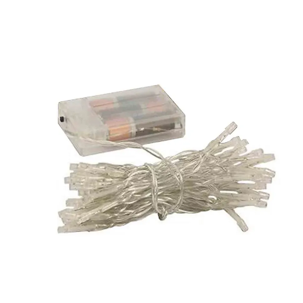 Lumineuse de Noël d’intérieur, guirlande lumineuse avec batterie pour décorer n’importe quel endroit de la maison.Prêt à l’emploi, ils sont nécessaires seulement 3 piles AA (non incluses).Ce produit est conforme aux normes CE.Nombre d’ampoules : 100 LEDLongueur du câble d’alimentation (m) : 7Tension d’entrée : 3 piles AA