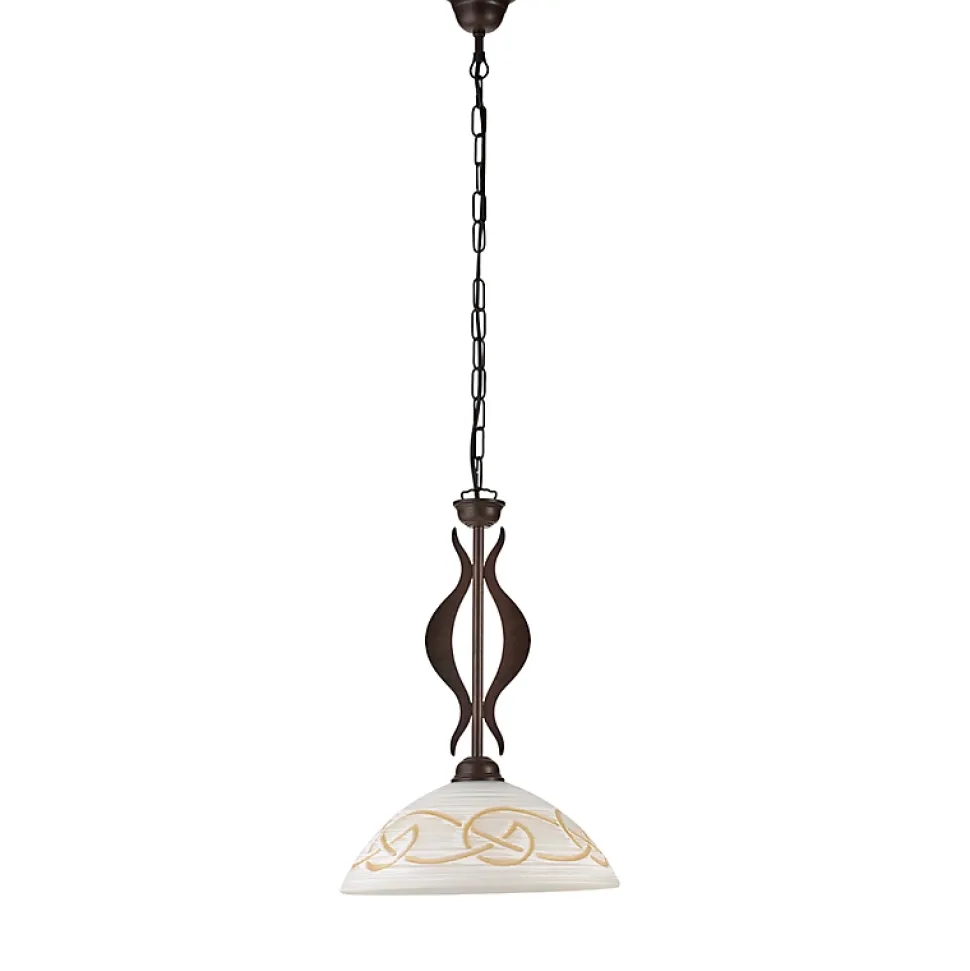 Lustre en fer laqué noir à décor effet rouille et diffuseur en verre diamètre 30 blanc et ambre 1 lumière – H.44 – MAX 104 – Ø30 Mesures du produit : H