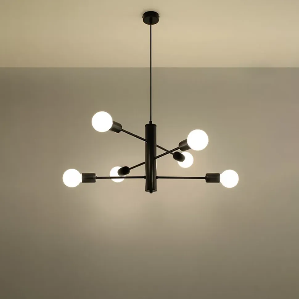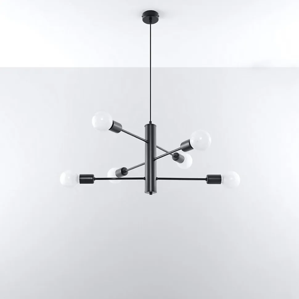 - Source lumineuse : E27, 6x max 15W LED, ~230V, 50Hz, IP20, classe de protection I.