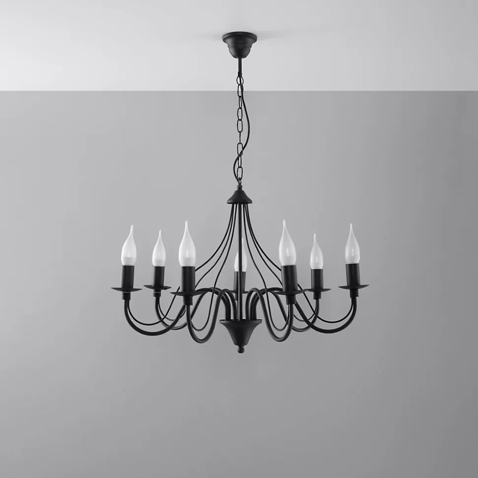 - Source lumineuse : E14, 7x max 10 W LED, ~230V, 50Hz, IP20, classe de protection I